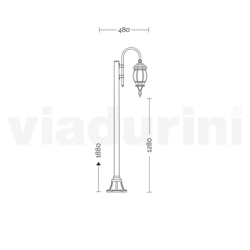 Lampa de gradina realizata prin productie 100% Made in Italy din aluminiu turnat sub presiune cu finisaj gri antracit cu difuzor din policarbonat transparent . Complet cu șuruburi din oțel inoxidabil. Eleganța și stilul vintage fac din această piesă de mobilier o soluție perfectă pentru a vă amenaja spațiile exterioare într-un mod precis și exclusiv, datorită detaliilor particulare care îi subliniază unicitatea. Ideal pentru medii exterioare precum grădini, alei, alei sau spații contractuale în aer liber, cum ar fi baruri și restaurante.