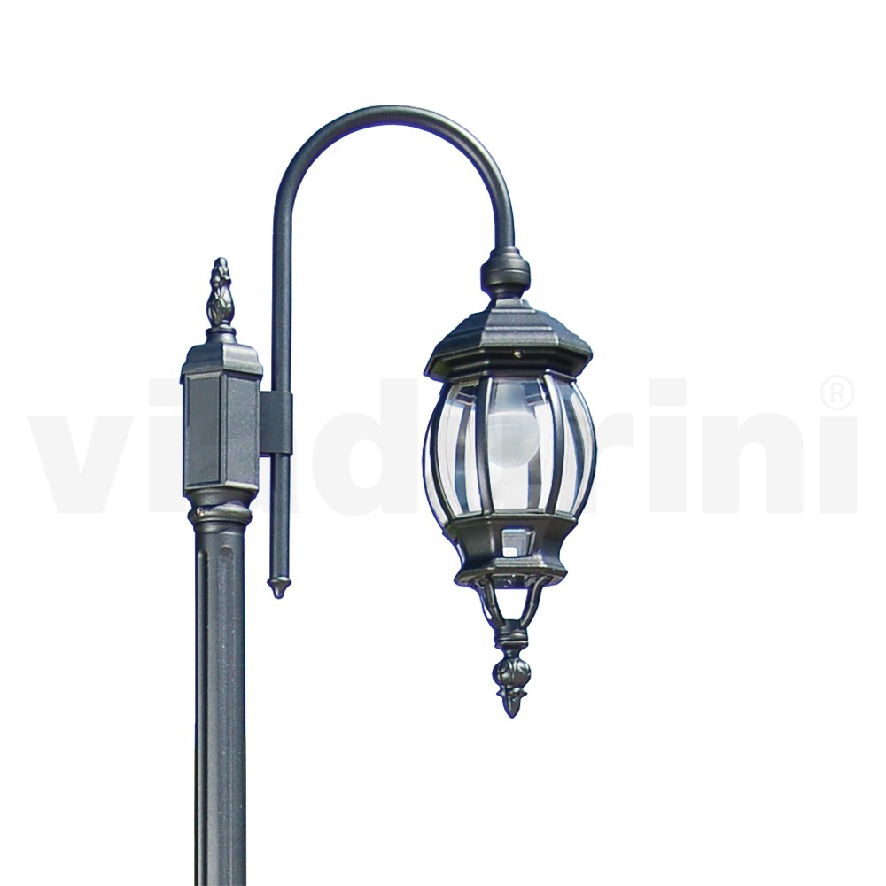 Lampa de gradina cu structura din aluminiu turnat sub presiune cu finisaj gri antracit si difuzor din policarbonat transparent . Complet cu șuruburi din oțel inoxidabil. Un produs care provine dintr-o producție 100% Made in Italy , caracterizată printr-un design rafinat și un suflet vintage și romantic unic prin detaliile minunate și decorațiunile rafinate și rafinate. Ideal pentru spații exterioare precum grădini, alei și alei, dar și medii contractuale precum baruri și restaurante.