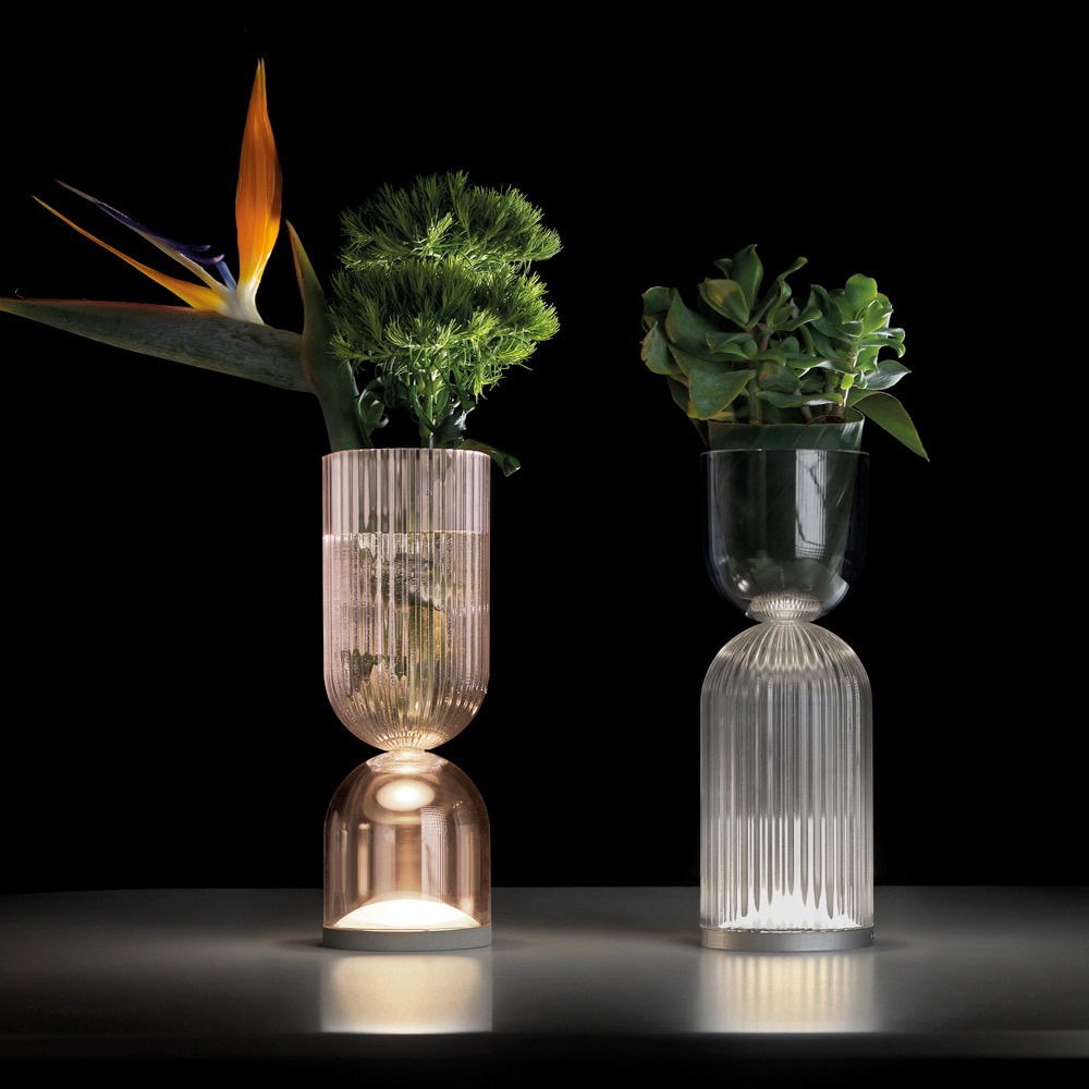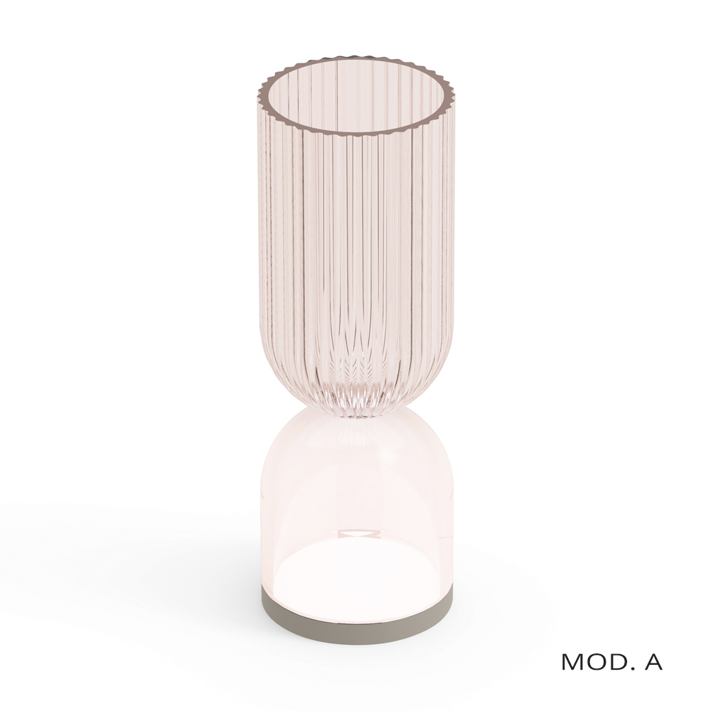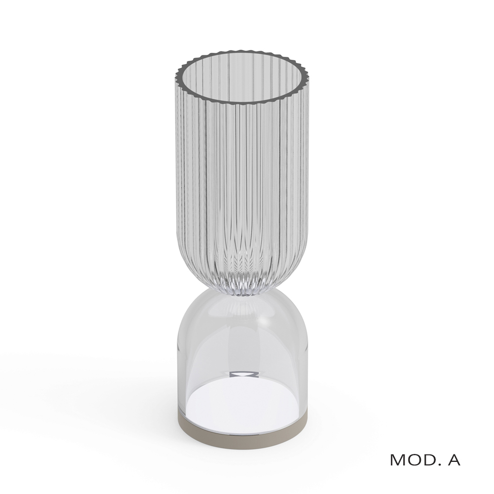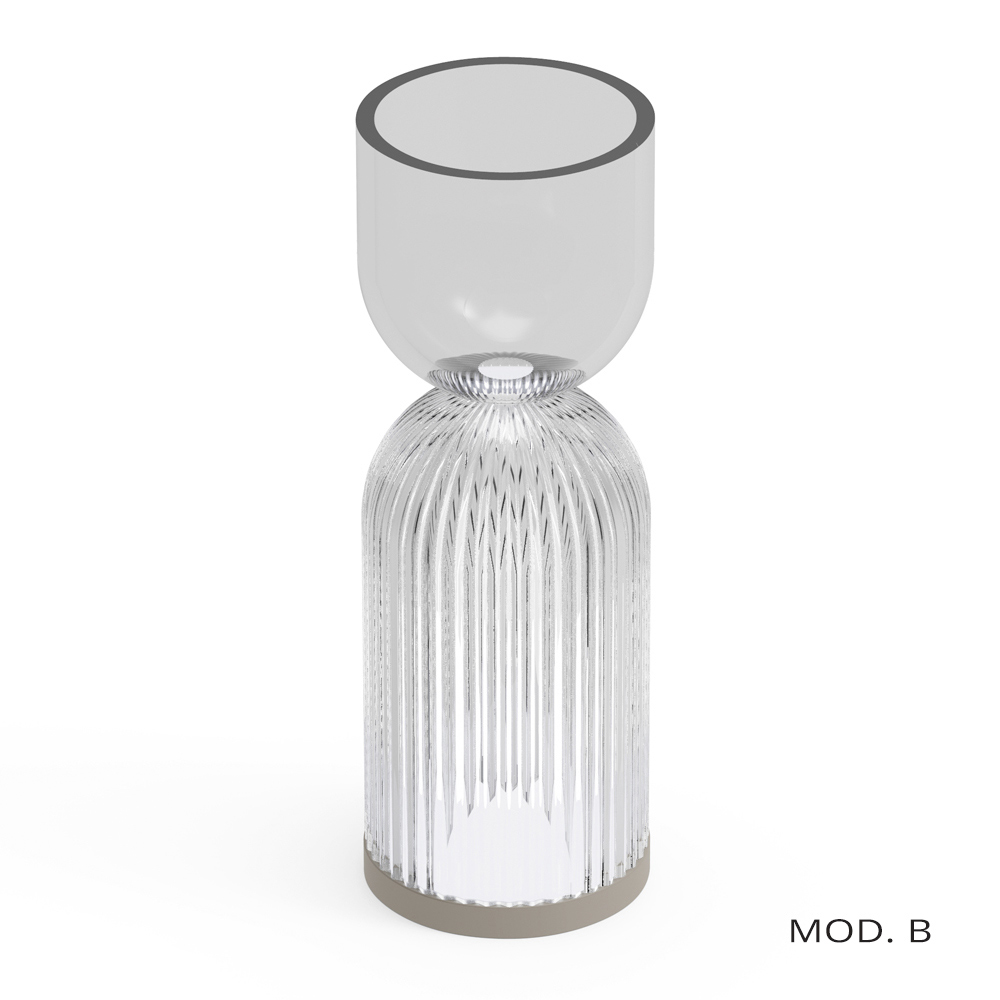 Această lampă este o fuziune uimitoare a designului modern și a eleganței clasice. Structura este pe jumătate din polimetilmetacrilat lucrat cu incizii verticale delicate, care creează un efect vizual fascinant atunci când lampa este aprinsă, proiectând un joc de lumini și umbre care îmbogățește orice mediu.