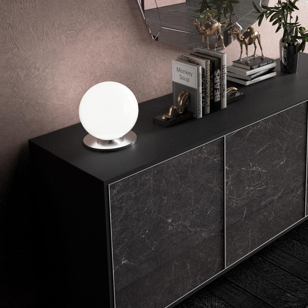 Lampa de masa din sticla venetiana suflata manual cu baza metalica.