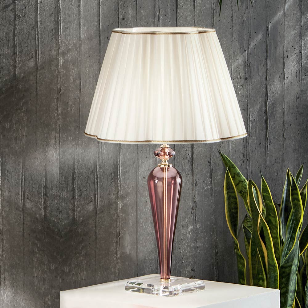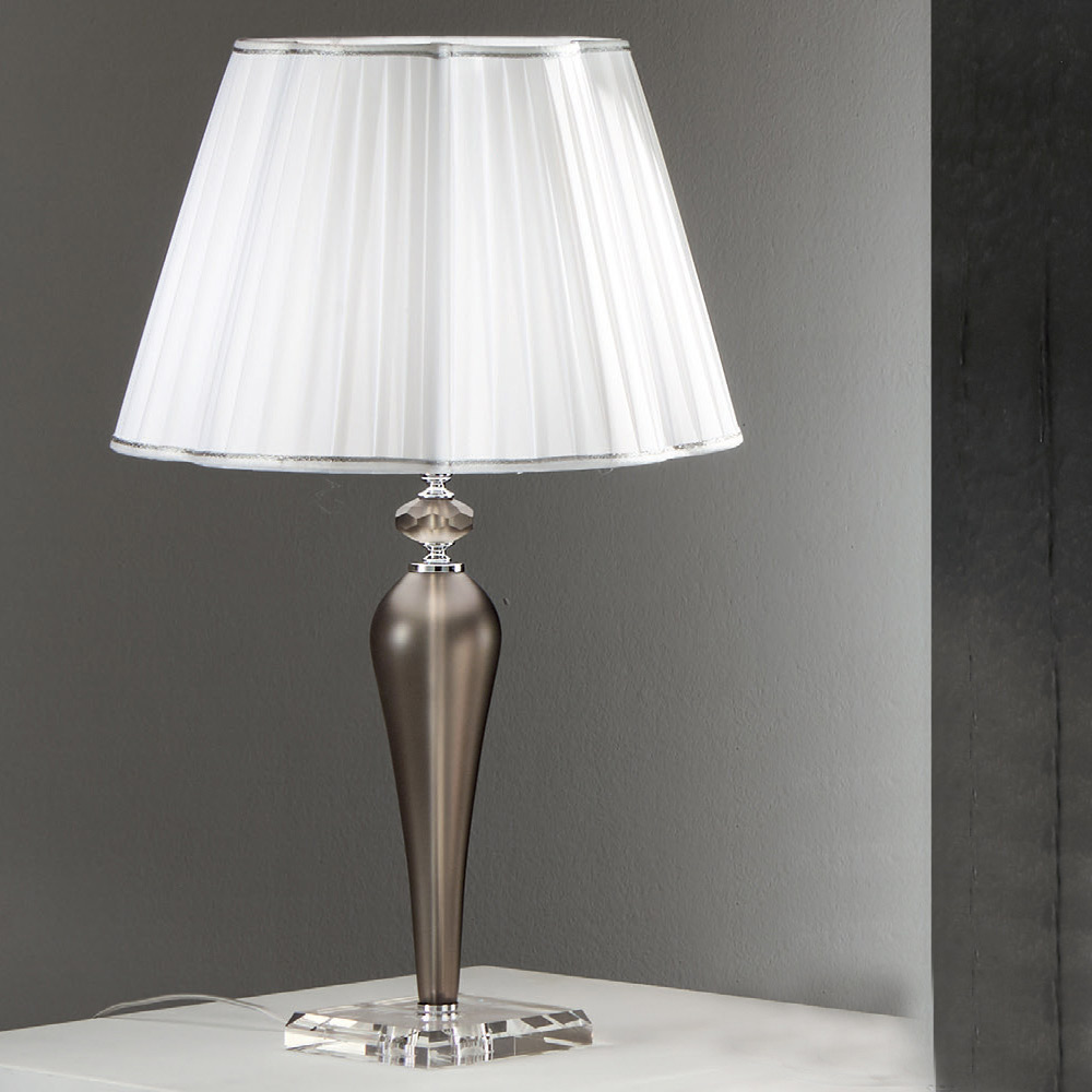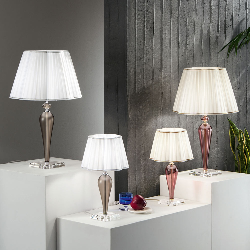 Lampa de masa din metal, sticla lucrata manual si abajur fabricat in Italia.