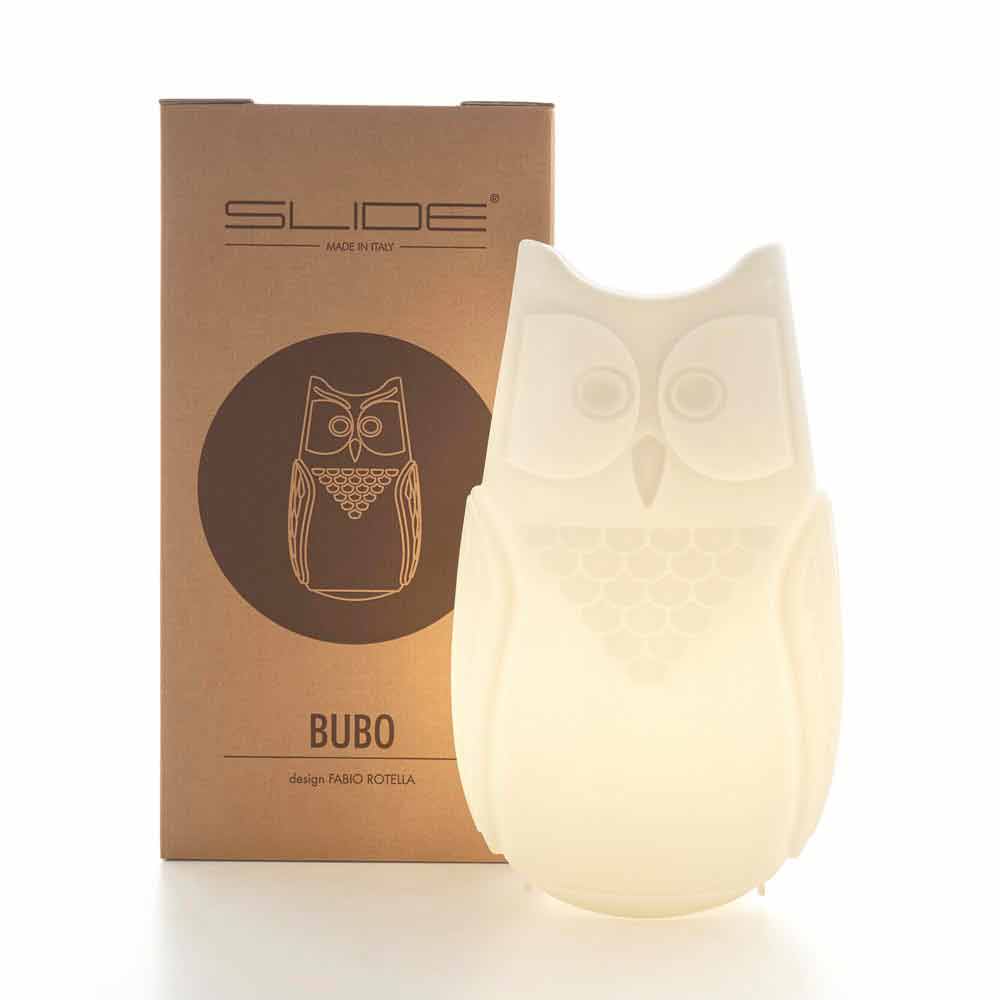 Lampă de masă cu bufniță colorată Slide Bubo, fabricată în Italia