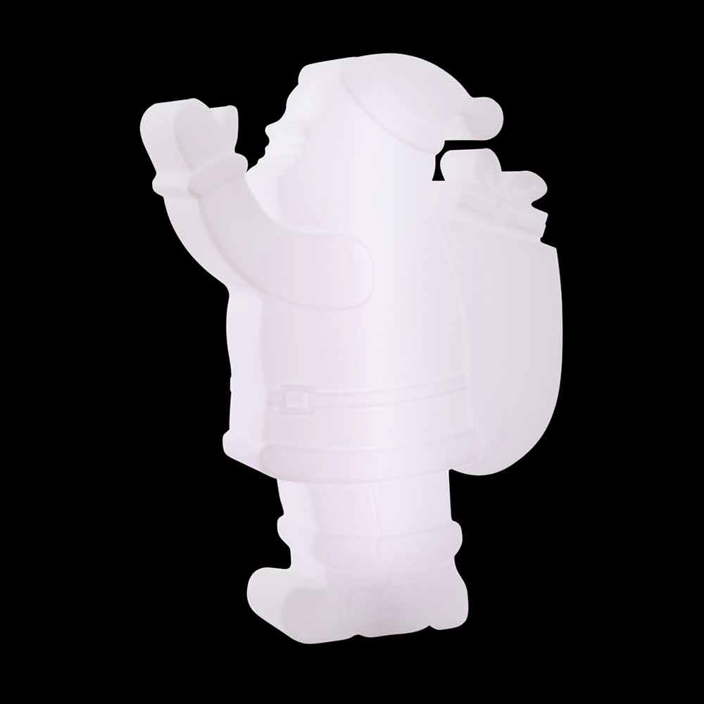 Lampă de podea în formă de Moș Crăciun din polietilenă albă cu LED-uri multicolore pentru uz interior sau exterior.