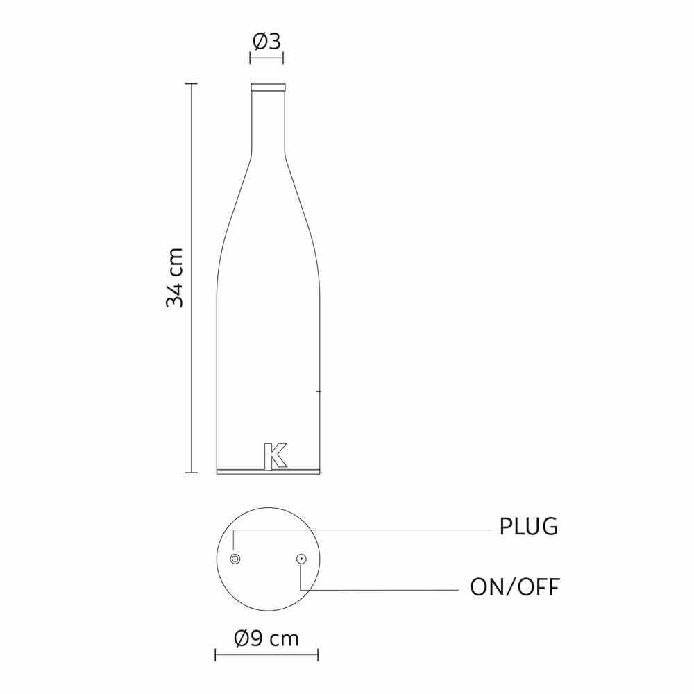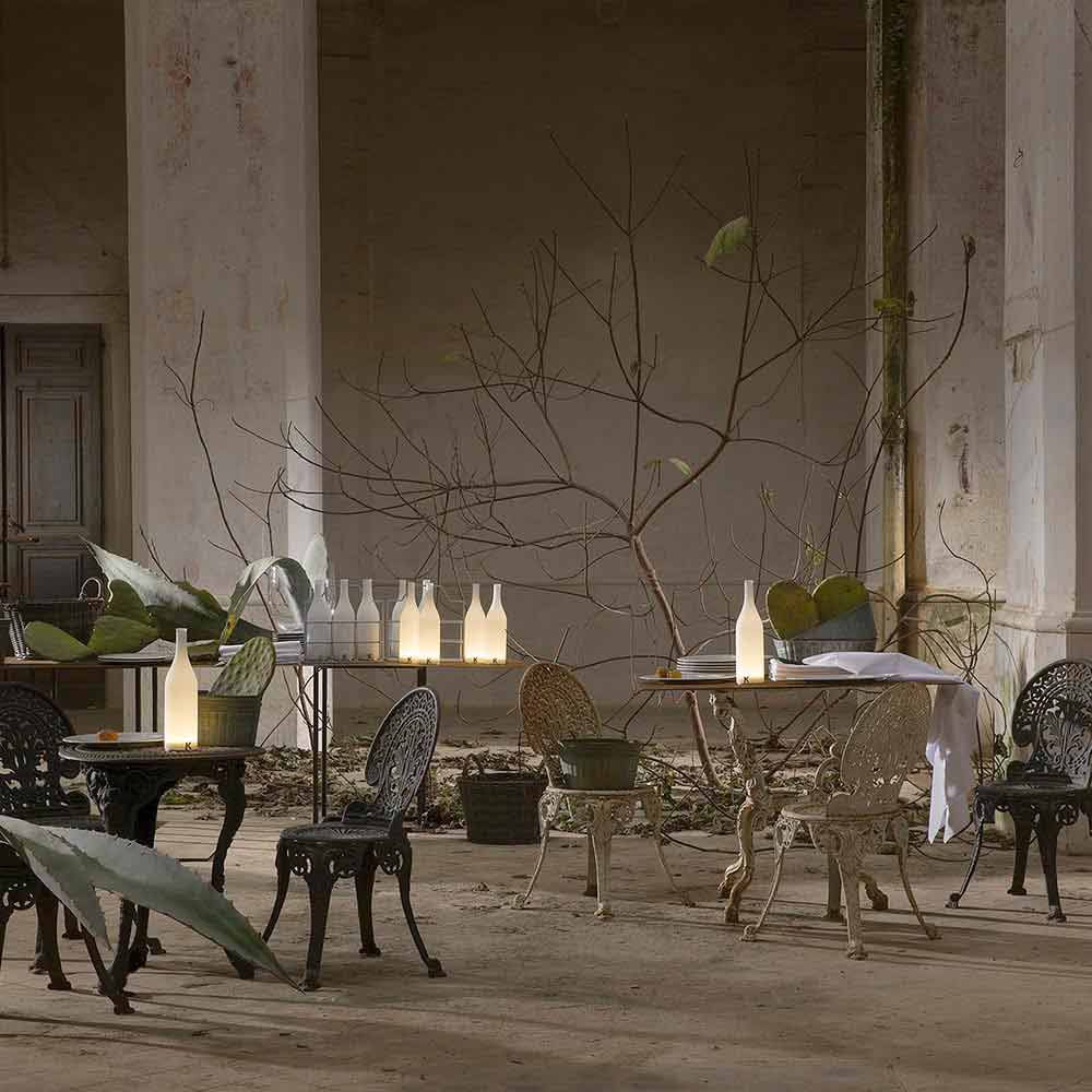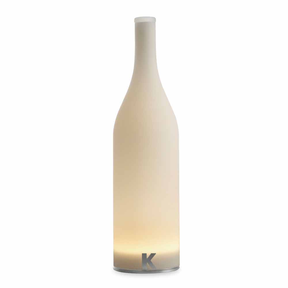 Această lampă de masă originală și unică are un design rafinat sub forma unei sticle cu linii pure și simple.
