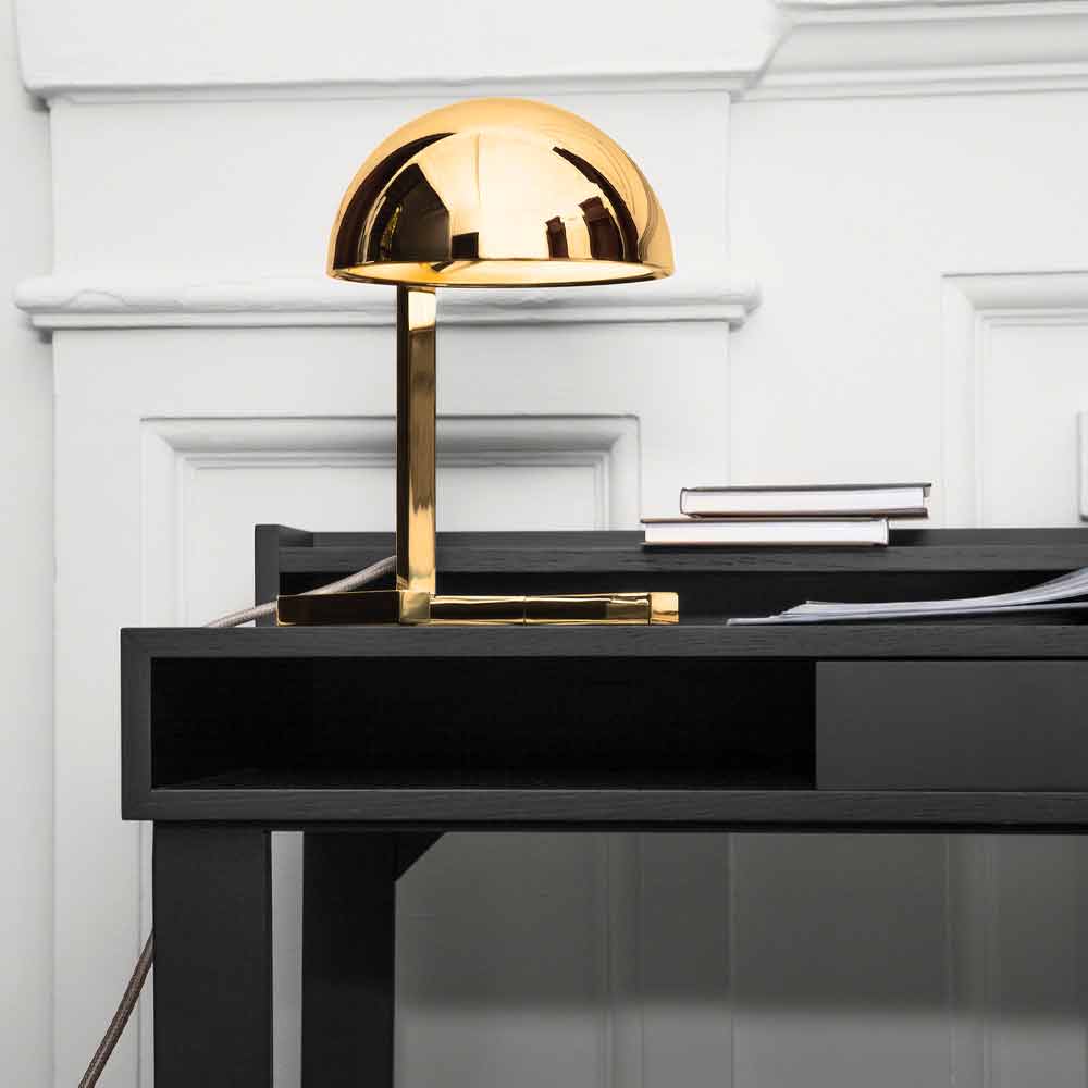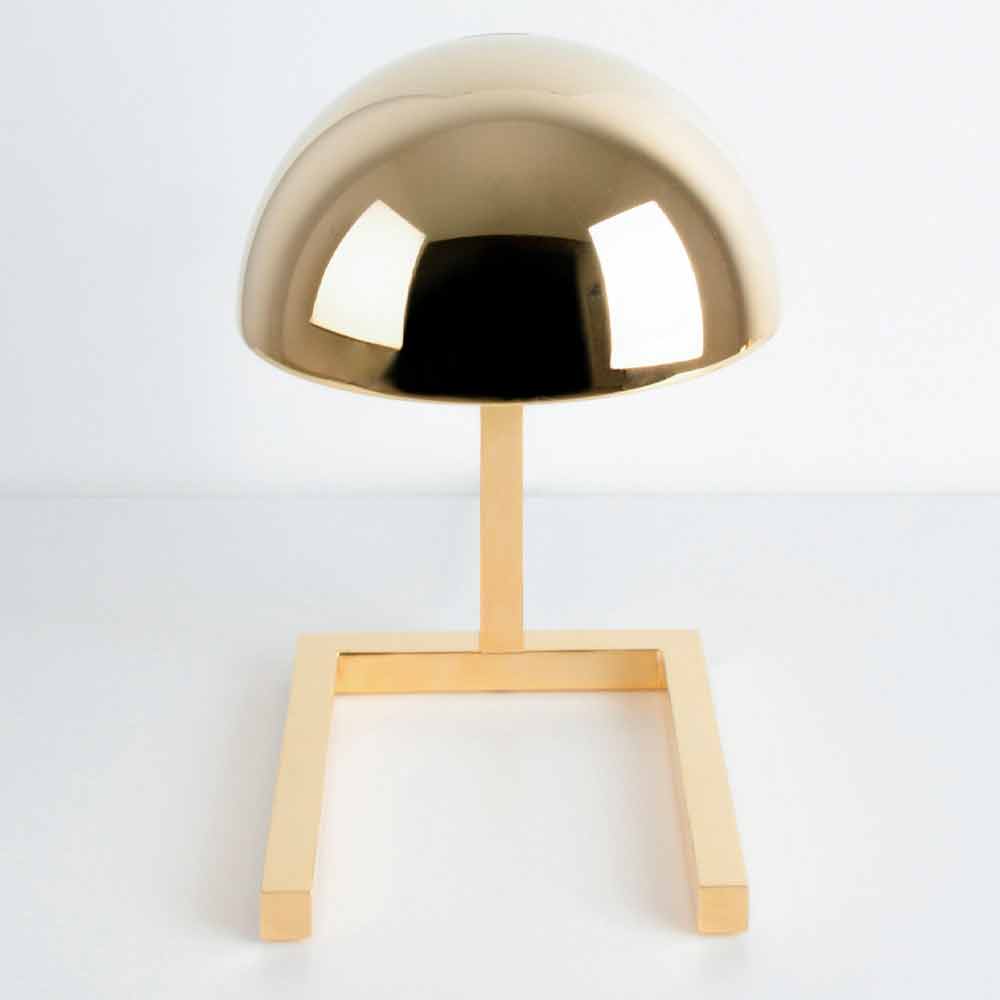 Lampă de masă fabricată în întregime în Italia din alamă lustruită cu cablu transparent de 140 cm echipată cu buton ON-OFF . Designul său include utilizarea diferitelor forme geometrice care creează un rezultat armonios minunat cu o estetică aproape futuristă. Structura sa este formată dintr - un capac sferic , care este plasat pe un piedestal cu o figură patrulater dând viață unei idei originale și creative de iluminat, ideal atât pentru medii de pe piața internă cât și pentru studii sau birouri în cazul în care acesta va contribui la îmbogățirea mobilei datorită unei extrem atingere elegantă și rafinată .