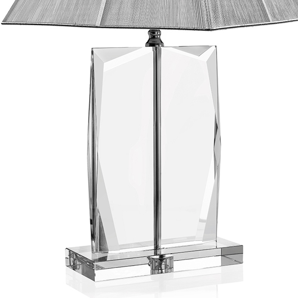 Lampă de masă din cristal cu abajur pătrat din argint în 2 dimensiuni.