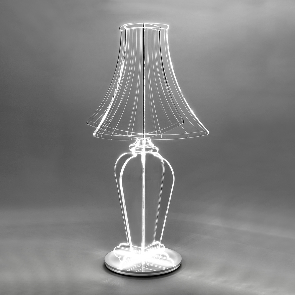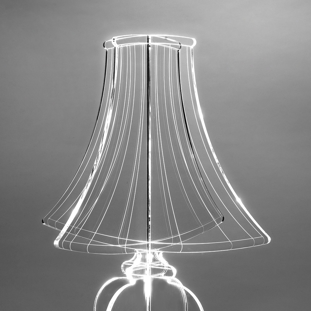 Lăsați-vă vrăjiți de această lampă, o adevărată bijuterie de design care îmbină inovația tehnologică cu frumusețea estetică pură . Această lampă este o sculptură de lumină. Plexiglassul 100% PMMA, selectat din polimeri virgini, este realizat cu meticulozitate cu precizia tăierii cu laser, desenând o siluetă care se luminează și prinde viață de îndată ce lampa se aprinde.
