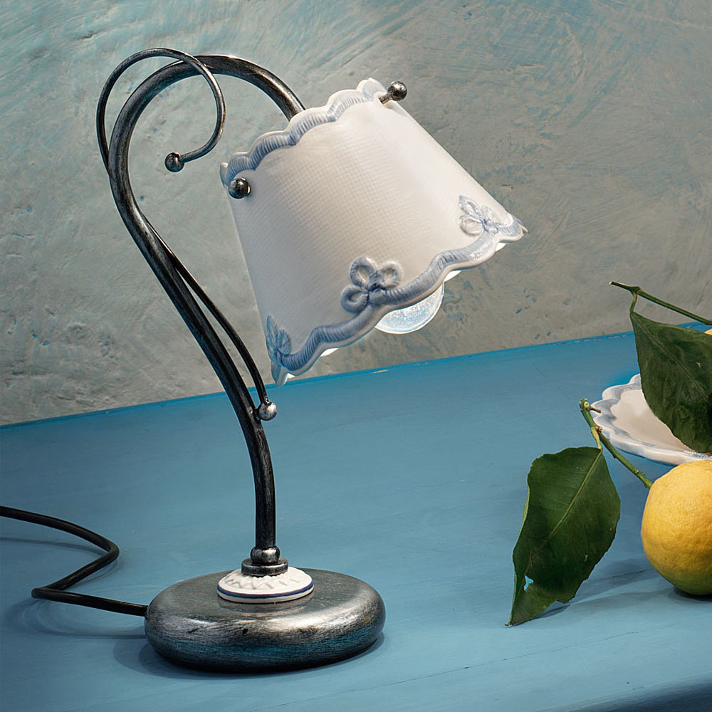 Această lampă de masă este realizat în întregime manual din metal și ceramică pictată manual, pentru a evidenția măiestria și abilitățile manuale ale artizanilor.