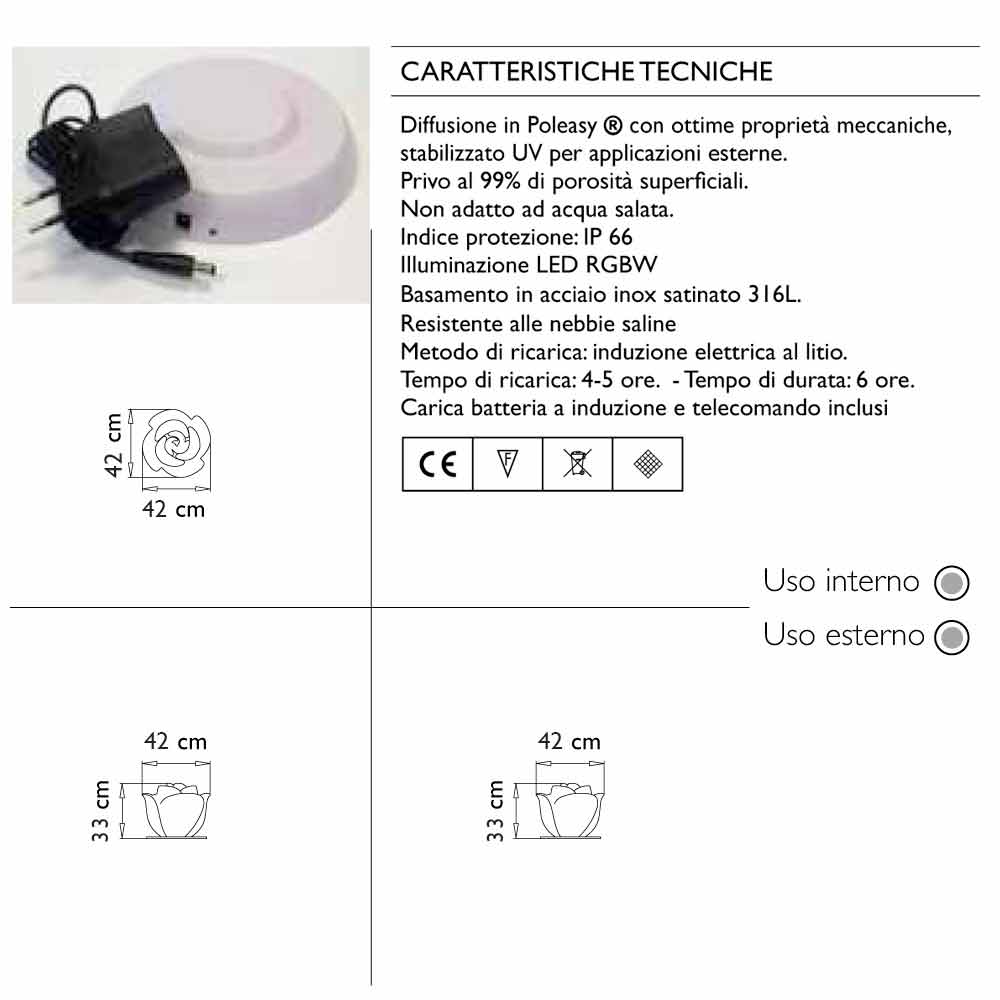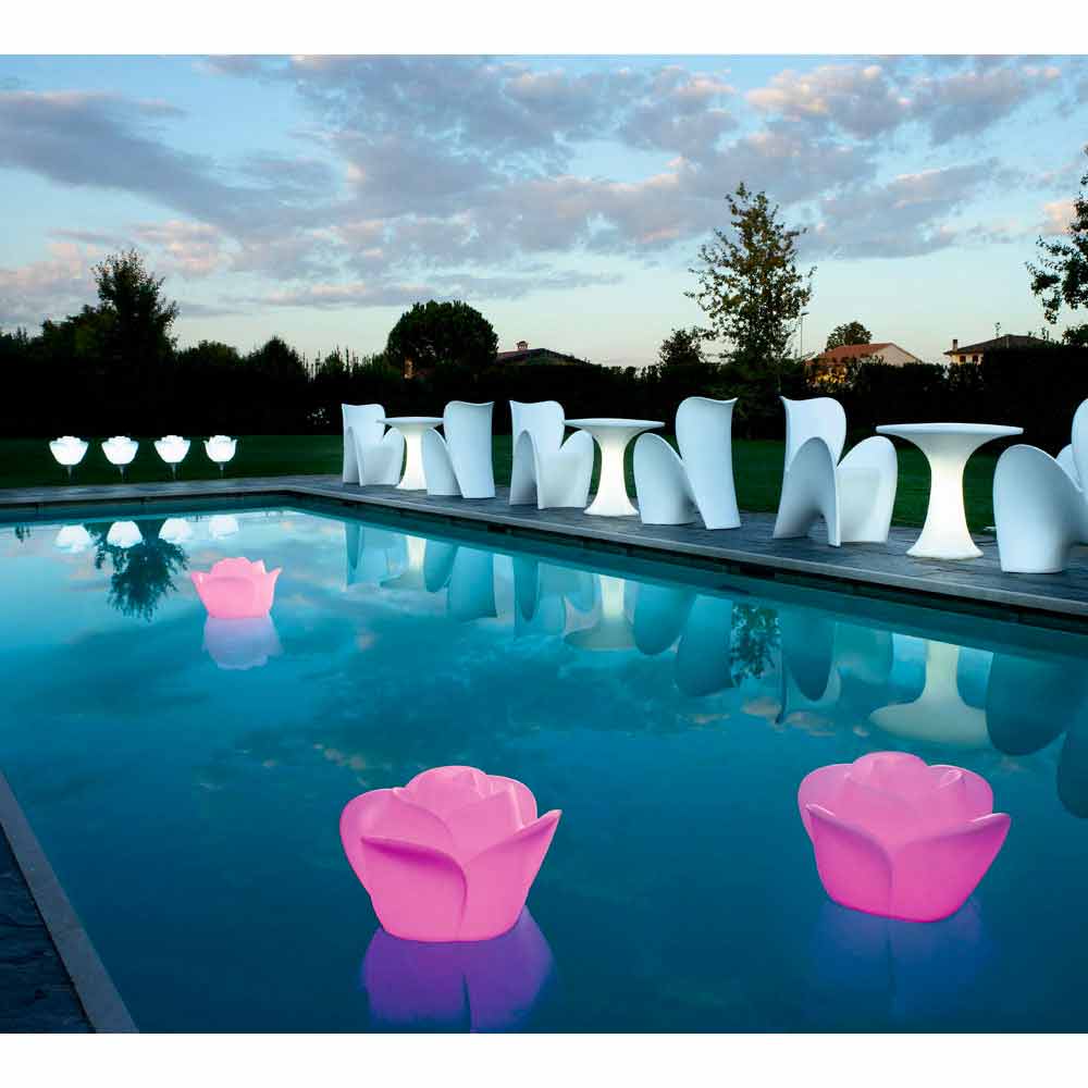 Trandafirul Baby Love Waterproof înflorește pe apă, solitar, în rânduri sau în ciorchini, ca un nufer de lumină magic care pluteste pe piscine și fântâni, născut pentru a ilumina sărbătorile. Întotdeauna tandru, sugestiv, inconfundabil. Baby Love , o lampă ornamentală cu profil roz stilizat poate lua diferite forme, o lampă originală de podea disponibilă în diferite înălțimi, o lampă elegantă, candelabru, aplicație de perete și lampă de exterior în versiunile Waterptoof și Garden, unde designul său este concepute pentru a favoriza eliminarea mai rapidă și completă a apei de ploaie.