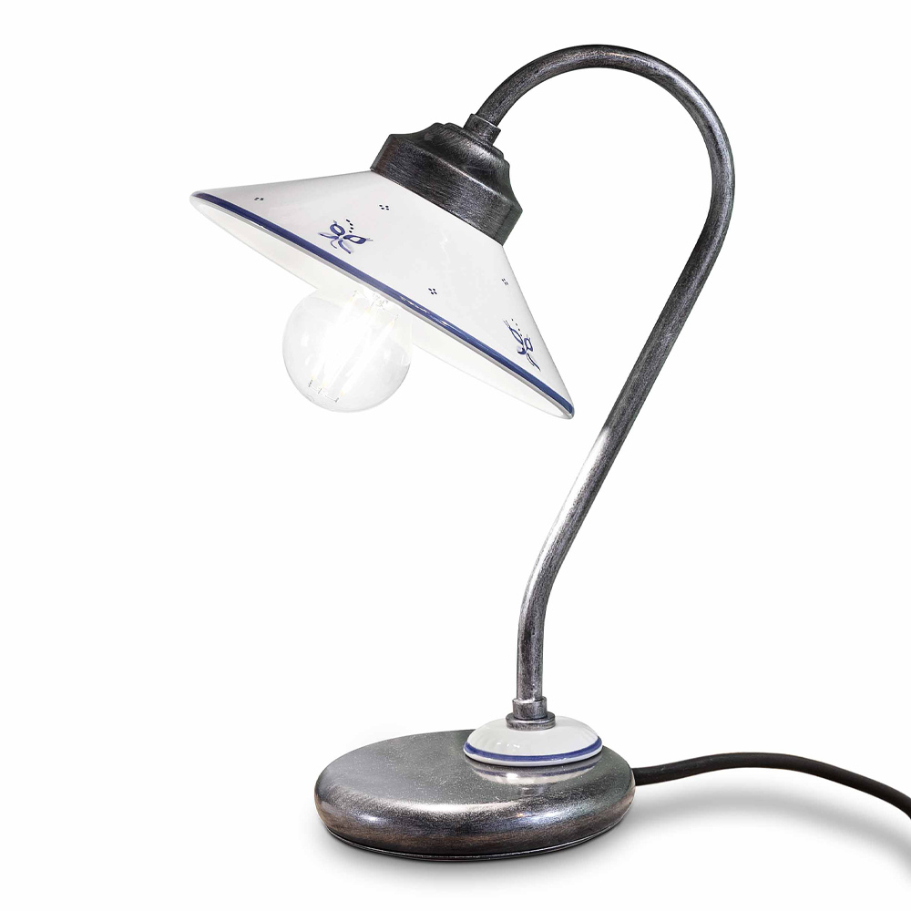 Lampa de masa vintage din fier si ceramica pictata manual realizata in Italia de Ferroluce.