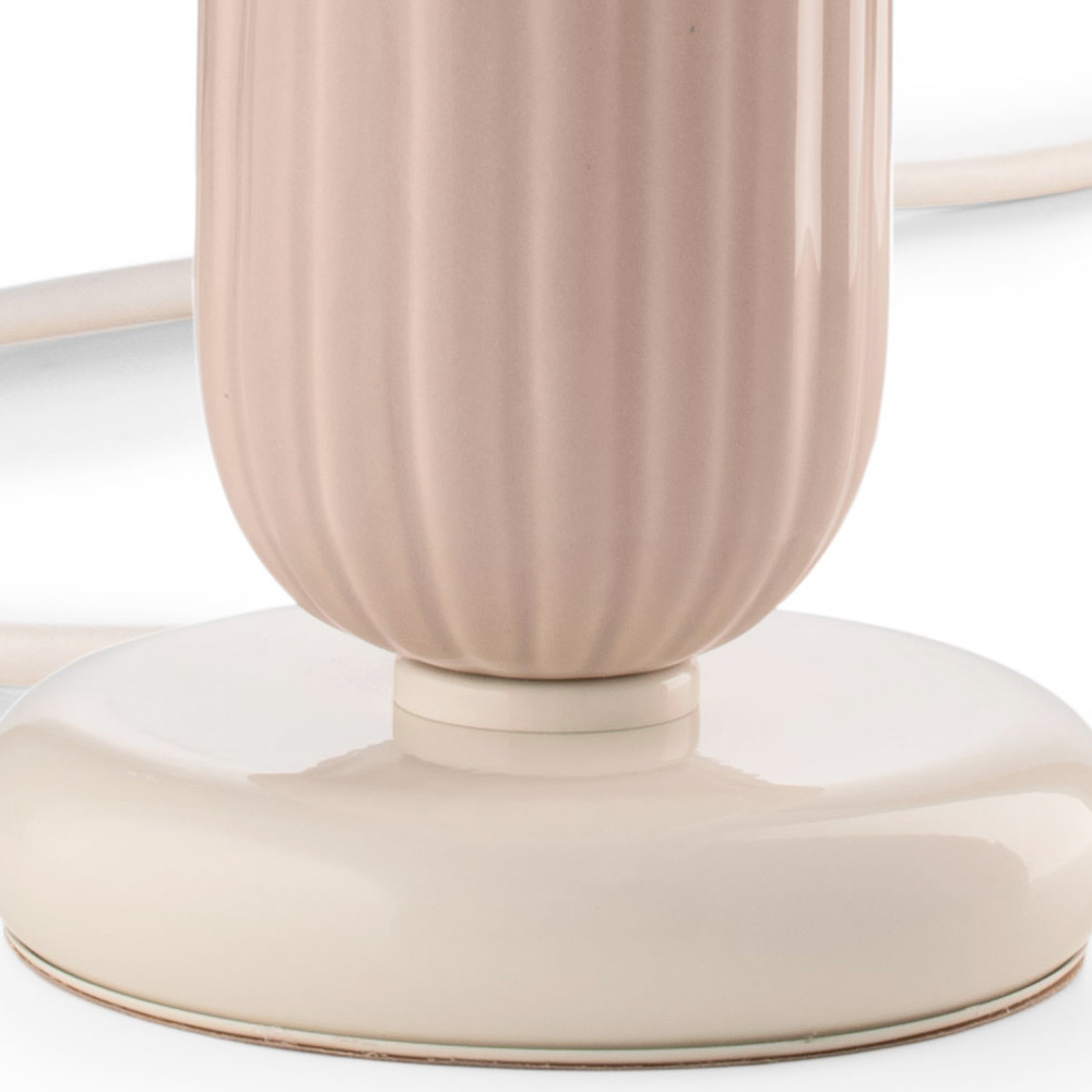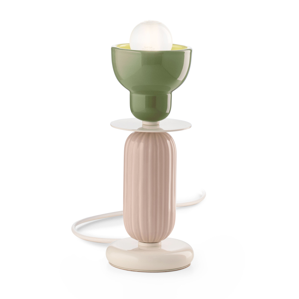 Lampa de masa din ceramica colorata , baza din fier vopsit alb si cablu cu cablare PCV albă în întregime Made in Italy.