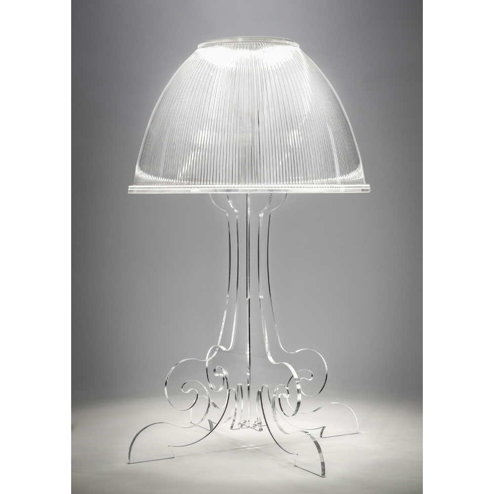Lampa de masa cu LED din plexiglas transparent Made in Italy.