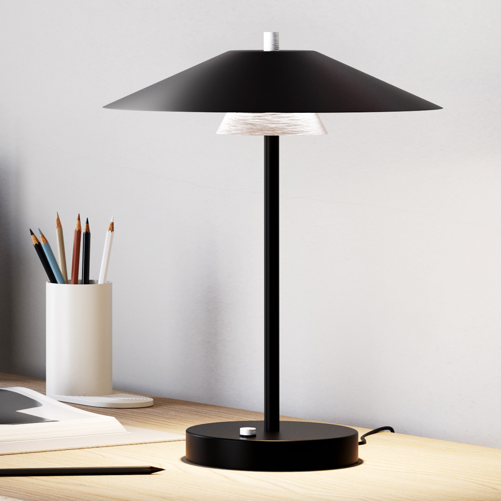 Această lampă de masă cu acționare tactilă este îmbinarea perfectă între designul contemporan , funcționalitatea avansată și eleganța minimalistă . Silueta sa subțire, cu un abajur în formă de con inversat și o bază compactă, se integrează perfect atât în ambienturile domestice , cât și în cele profesionale .