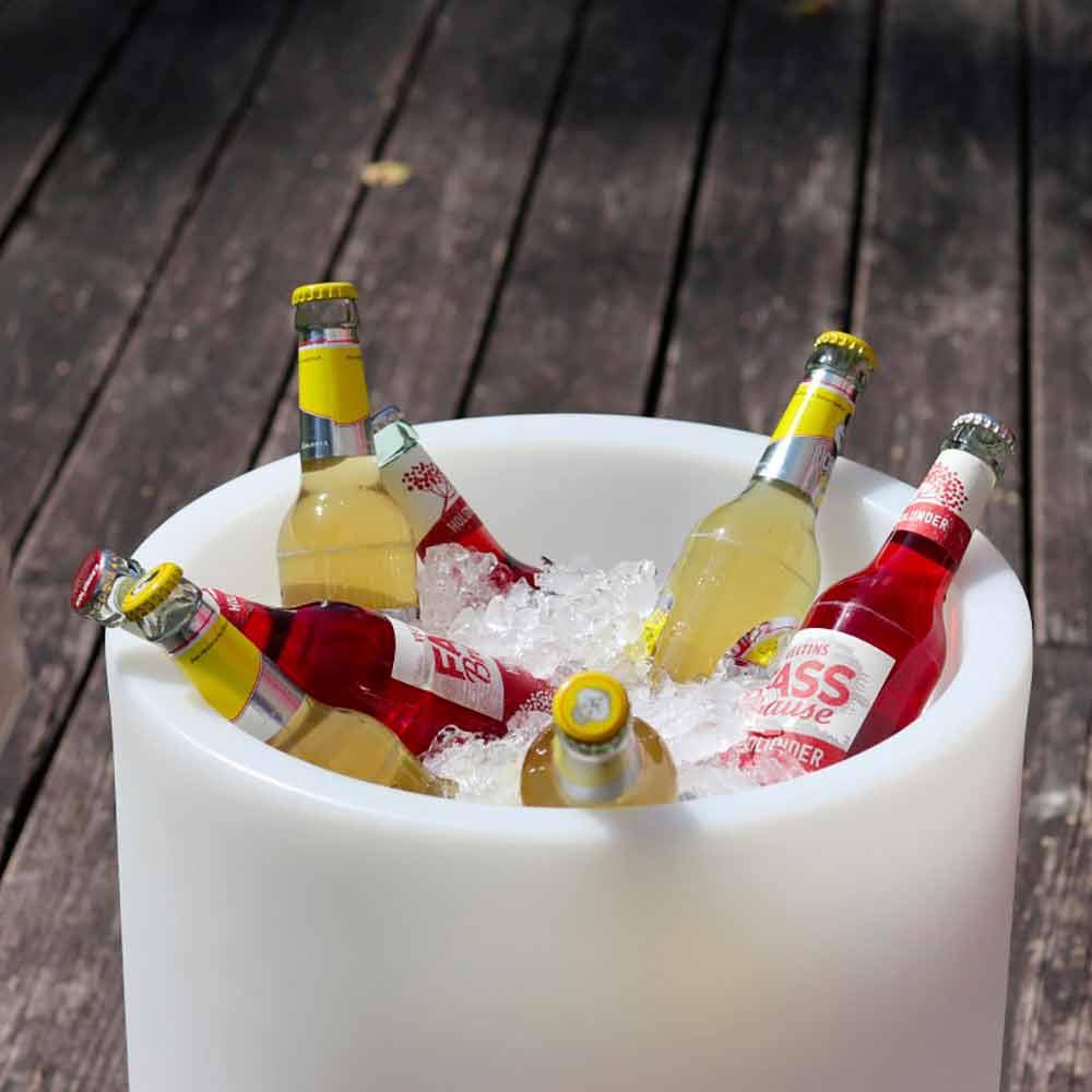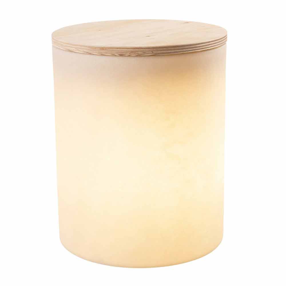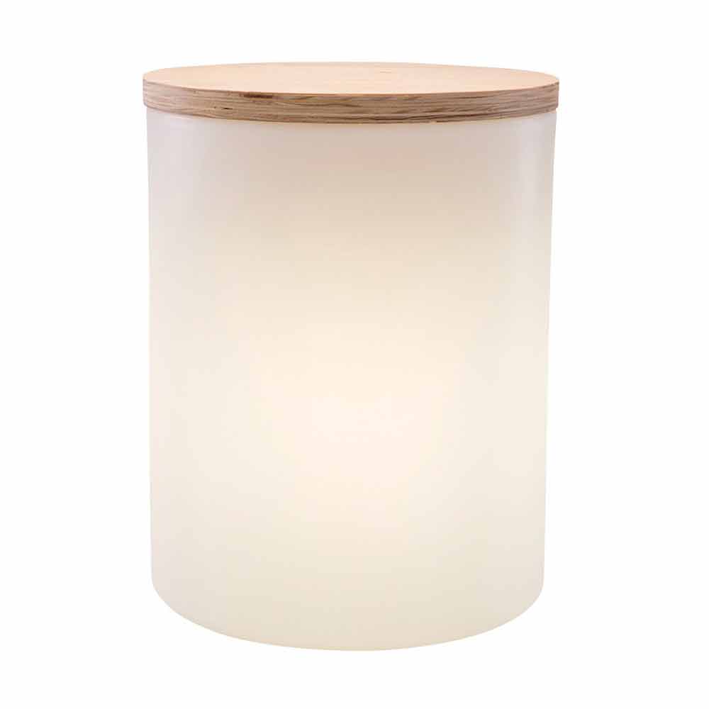 cilindrică cu blatul din lemn îl face potrivit pentru a fi folosit ca scaun, în timp ce sistemul inteligent de drenaj îl face adecvat și ca ghiveci luminos pentru plante.