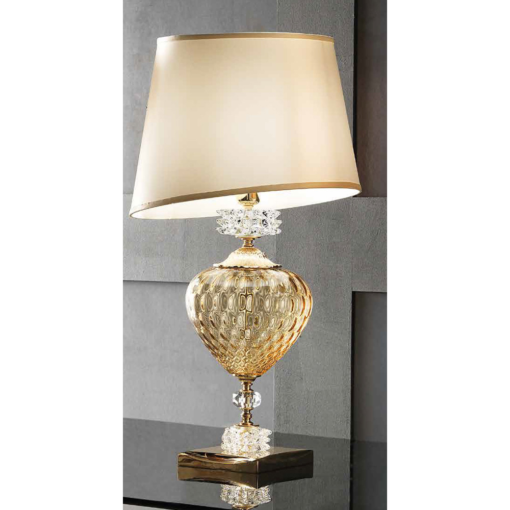 Lampa de masa din sticla lucrata manual si metal cu abajur, lux italian.