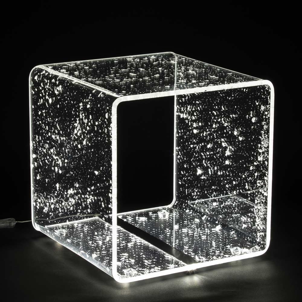 Noptiera luminoasa din cristal acrilic si foita aurie, argintie sau cupru, fabricata in Italia.