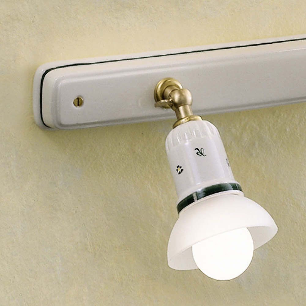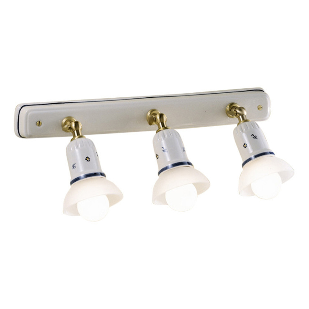 Aplică liniară cu 2 sau 3 lumini din alamă și ceramică pictată manual, realizată în Italia de Ferroluce.