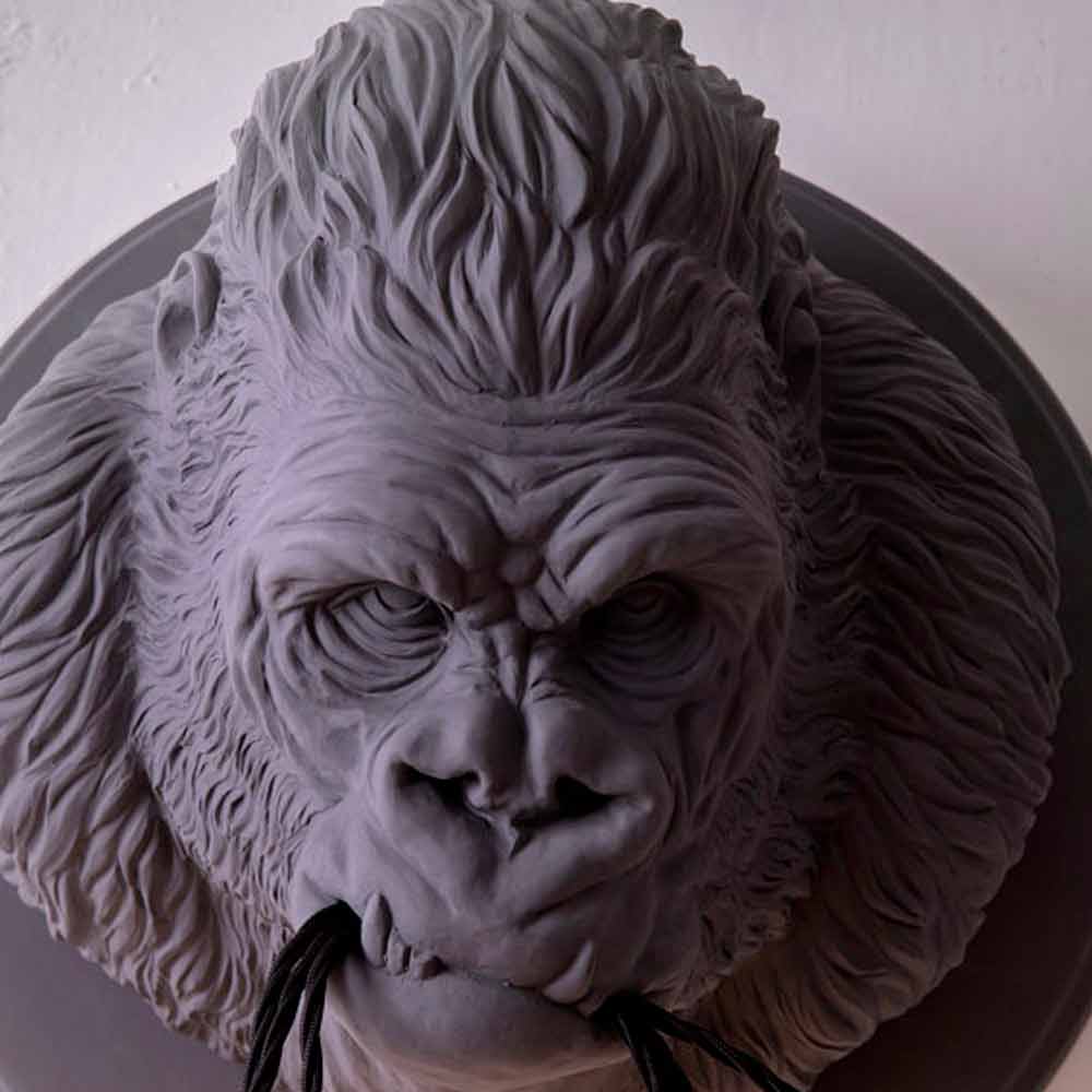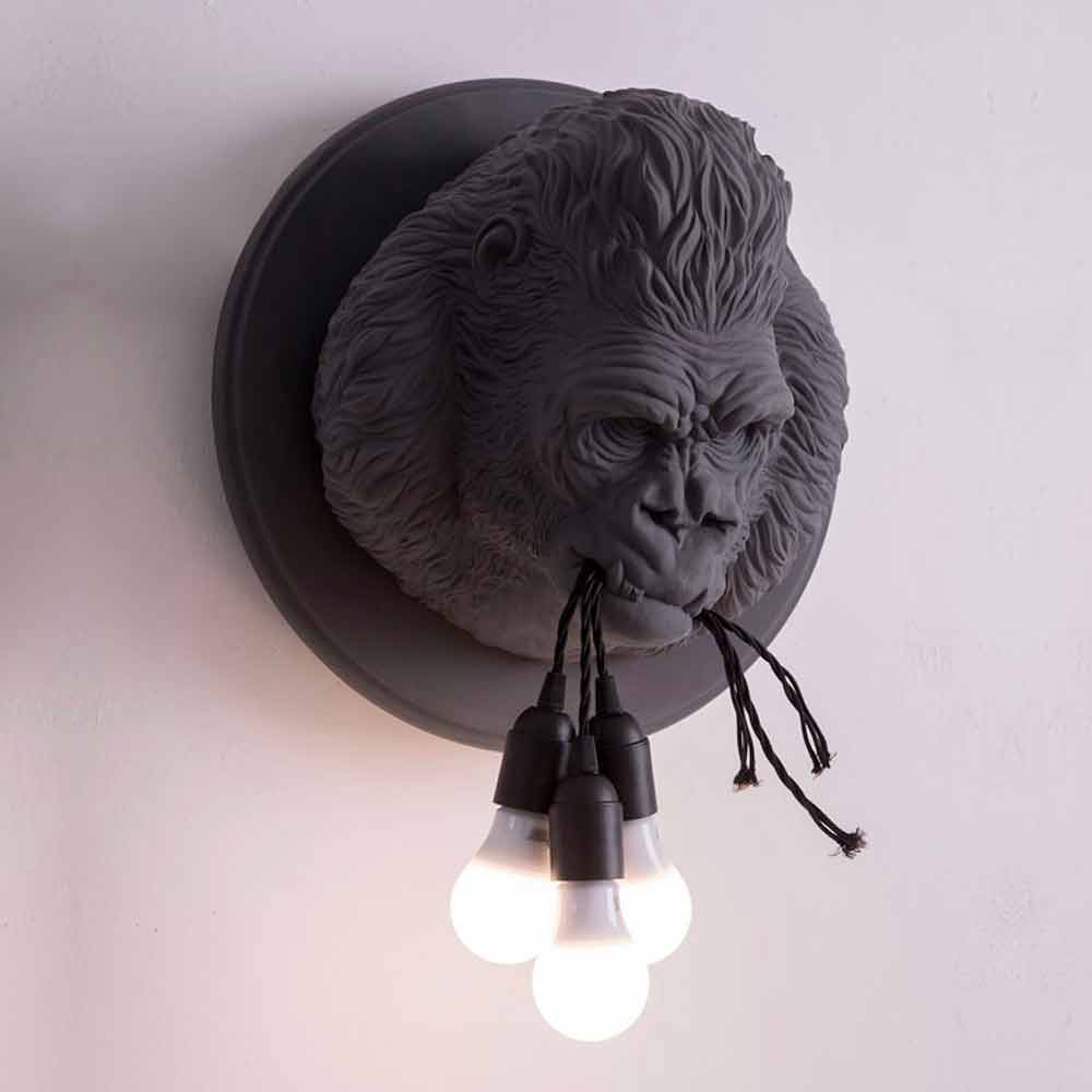 Lampă de perete din ceramică albă sau gri în formă de gorilă, produs manual realizat în Italia.