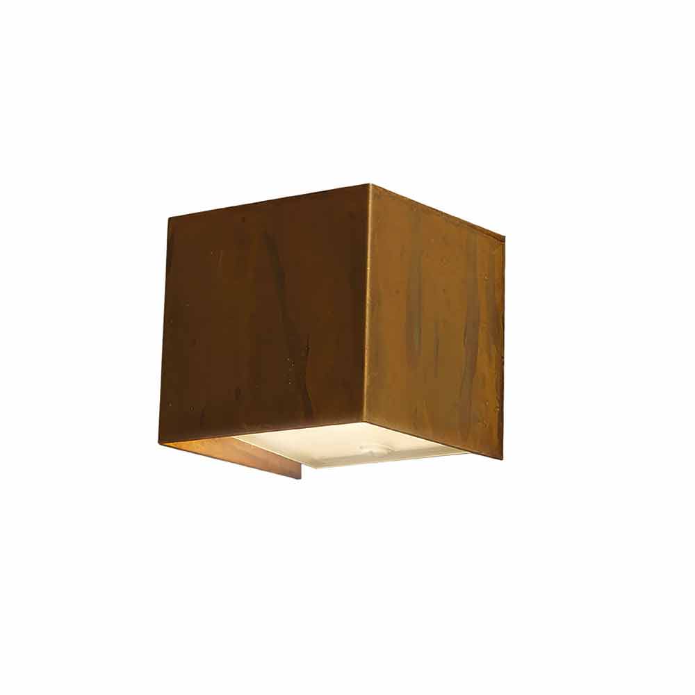 lampa de perete cu un cadru de alamă pătată. Disponibil în două dimensiuni, în formă pătrată sau rotundă. difuzor de sticla călită pentru o emisie de lumină directă și indirectă.
