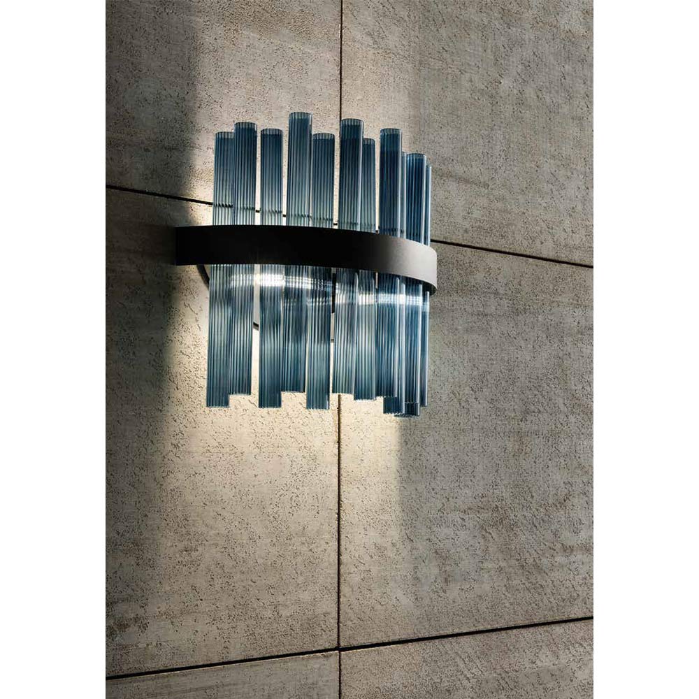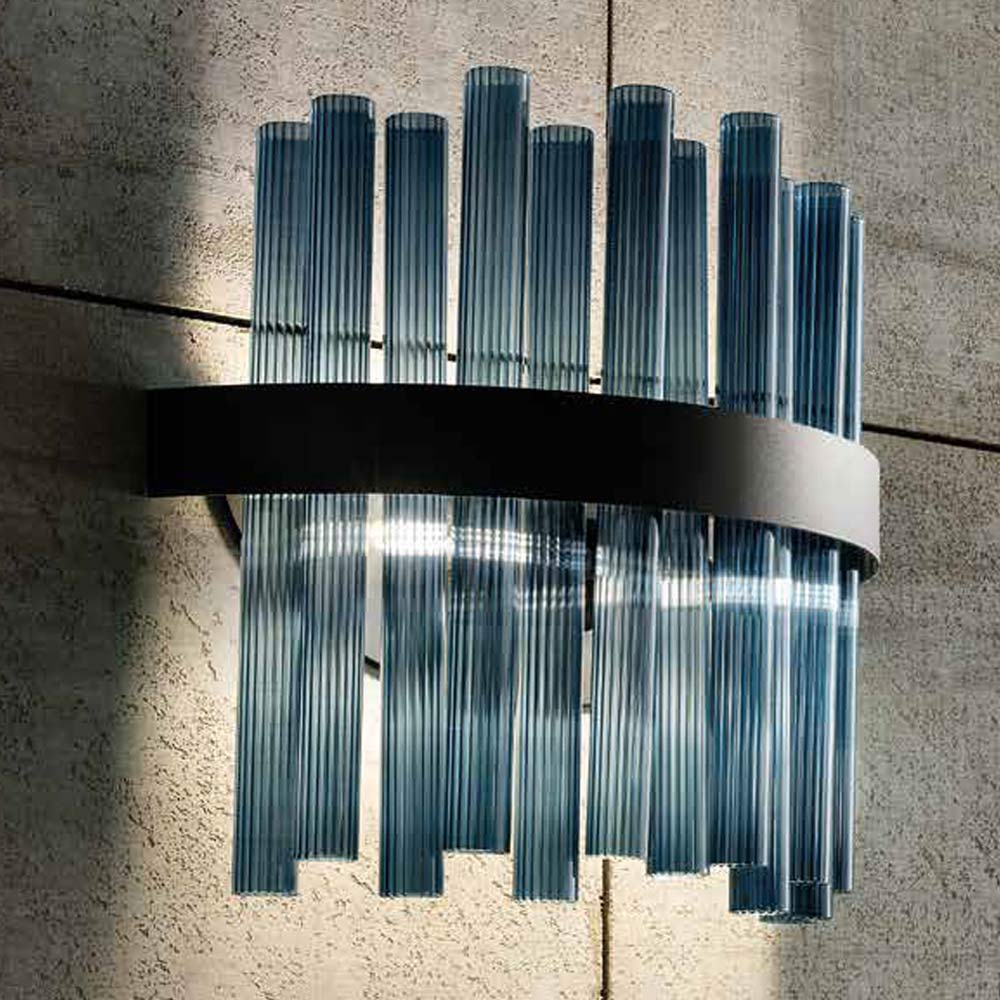 Lampă de perete din sticlă suflată cu dungi de lux, realizată manual, fabricată în Italia.