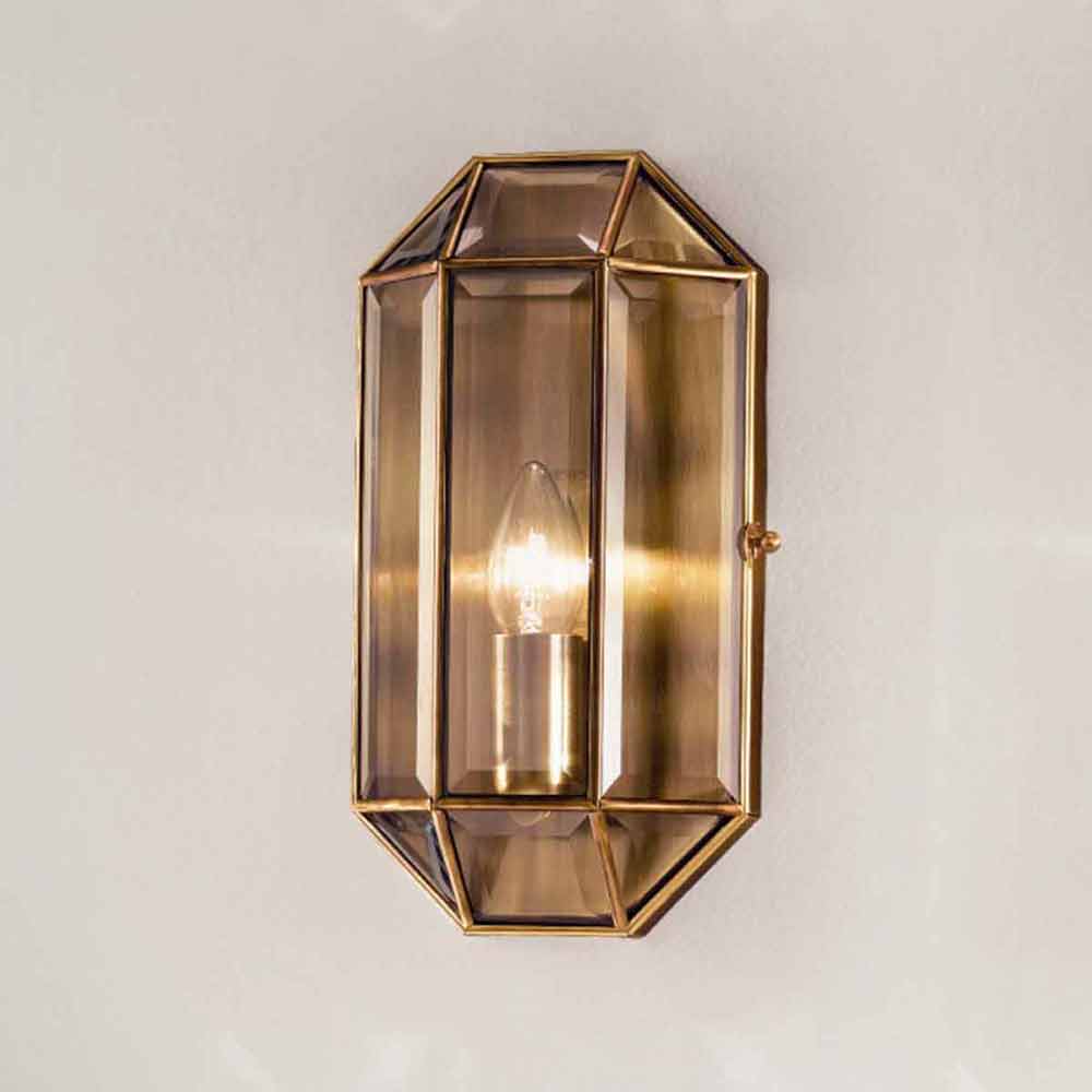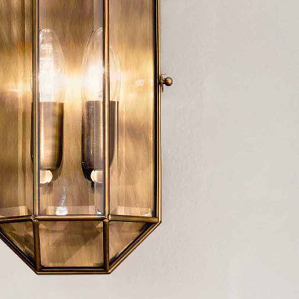 Lampă de perete din sticlă și alamă rumenită în două dimensiuni, realizată manual în Italia.