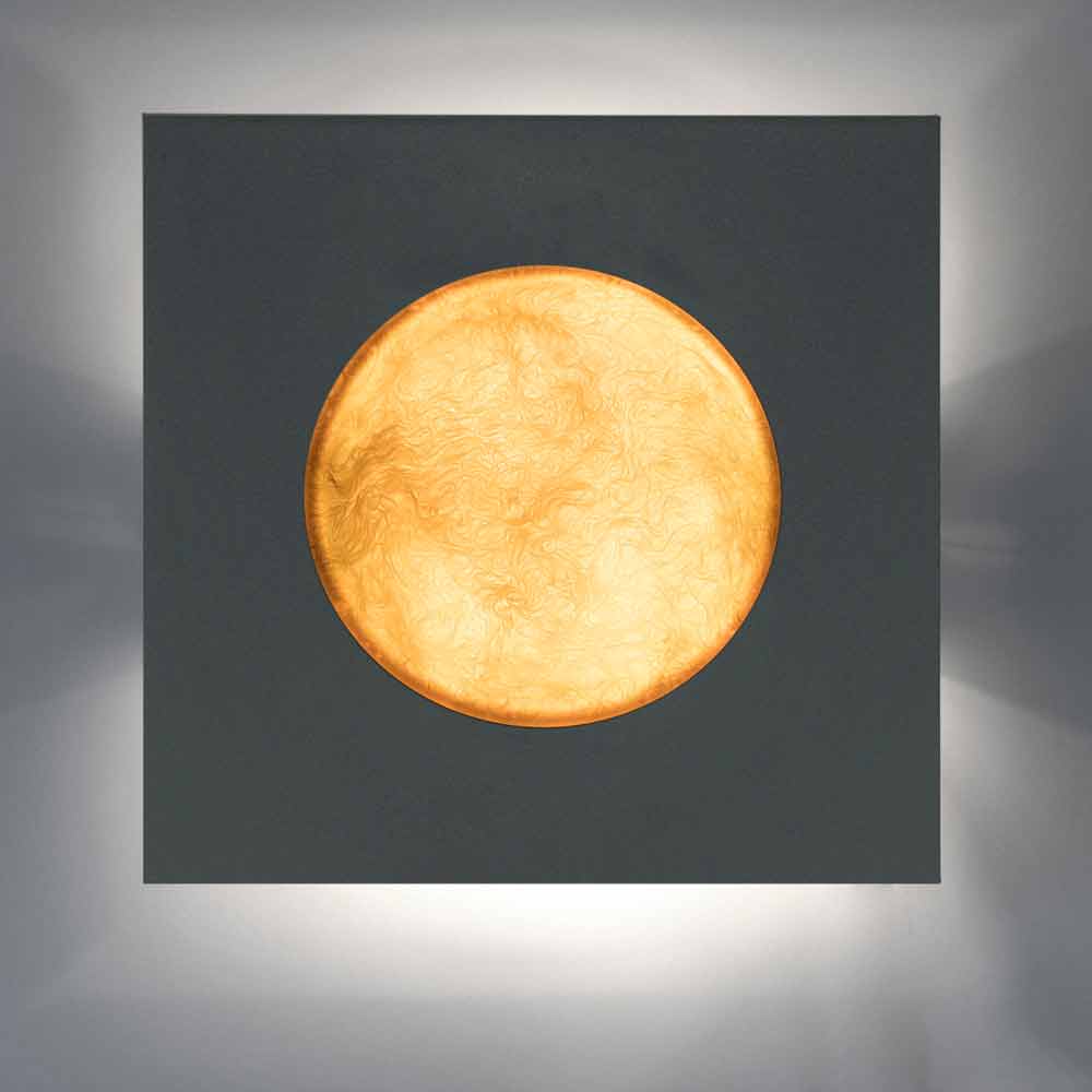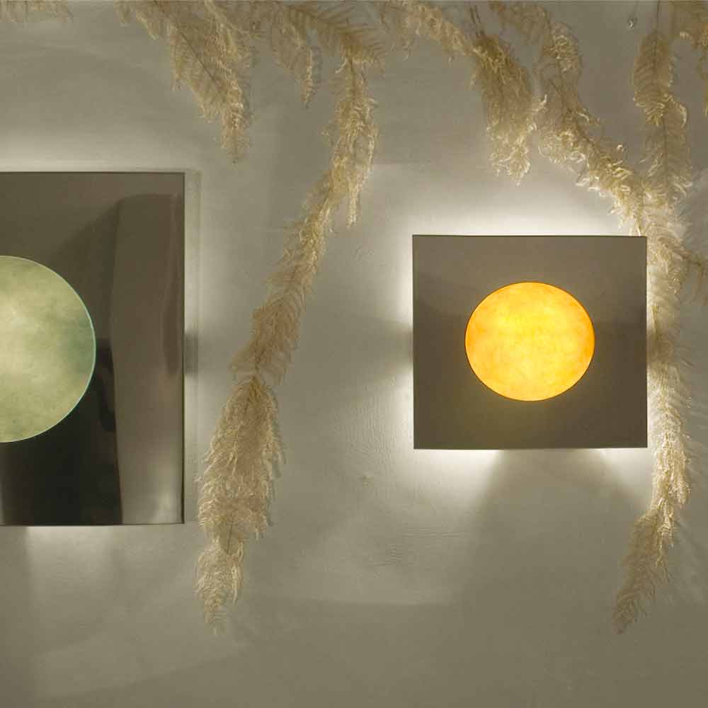 O adevărată opera de artă, realizată din oțel lustruit și Nebulită, un material compus din rășină și fibre ale căror vene dau lămpii un efect particular lunar.