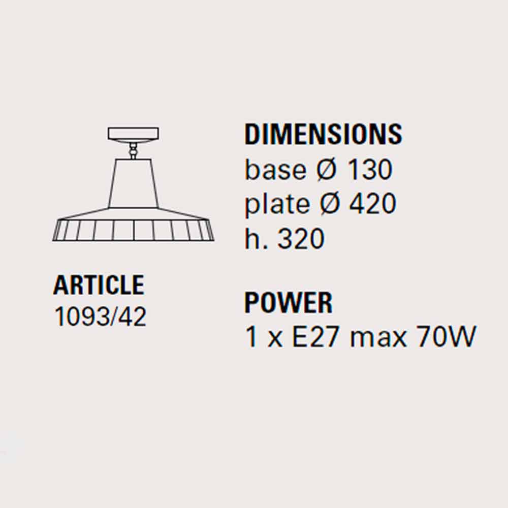 Dimensiuni : baza Ø130 x placa Ø420 x H 320 mm