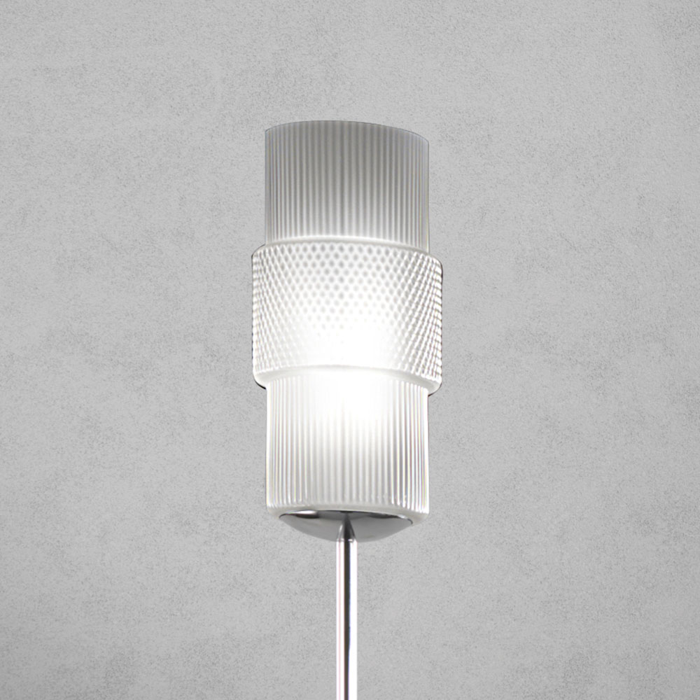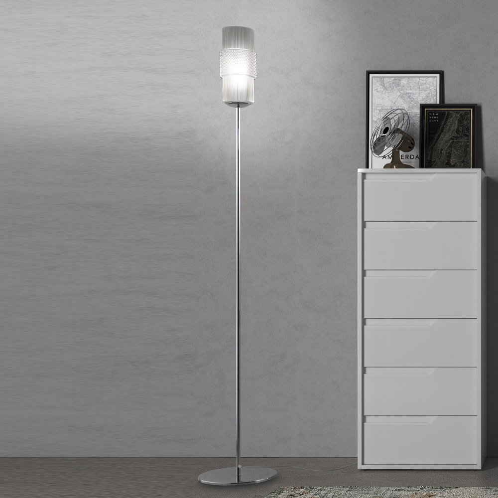 Lampă de podea realizată manual din sticlă Venice suflată manual și metal cromat.