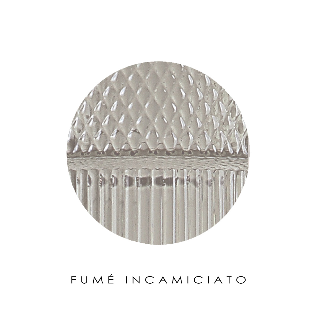 Prelucrare Rigata : tehnică de prelucrare care implică utilizarea unei matrițe cu linii mici și gravare cu romburi în care sticla este suflată pentru a crea un efect vizual și tactil minunat.