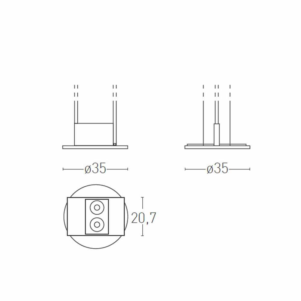 cu sursă LED , regulator de intensitate a luminii și cablu negru de 200 cm. Un design care se dezvoltă în înălțime, oferind o idee despre mobilierul care nu este voluminos și în același timp deosebit de funcțional, capabil să dea lumină spațiilor mari, creând o