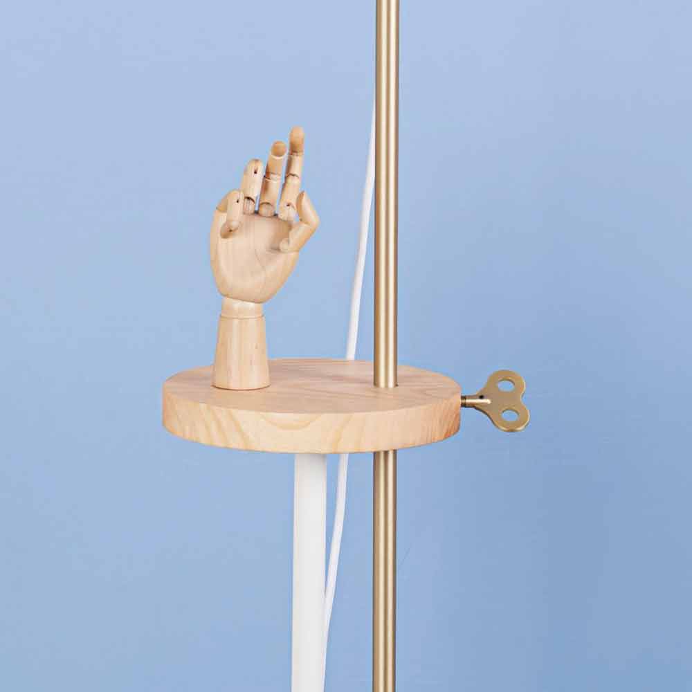 din lemn de frasin util ca suprafață de susținere, dar și, mai ales, ca element tehnic fundamental pentru a muta partea luminoasă la diferite înălțimi. Insertul în formă de cheie din