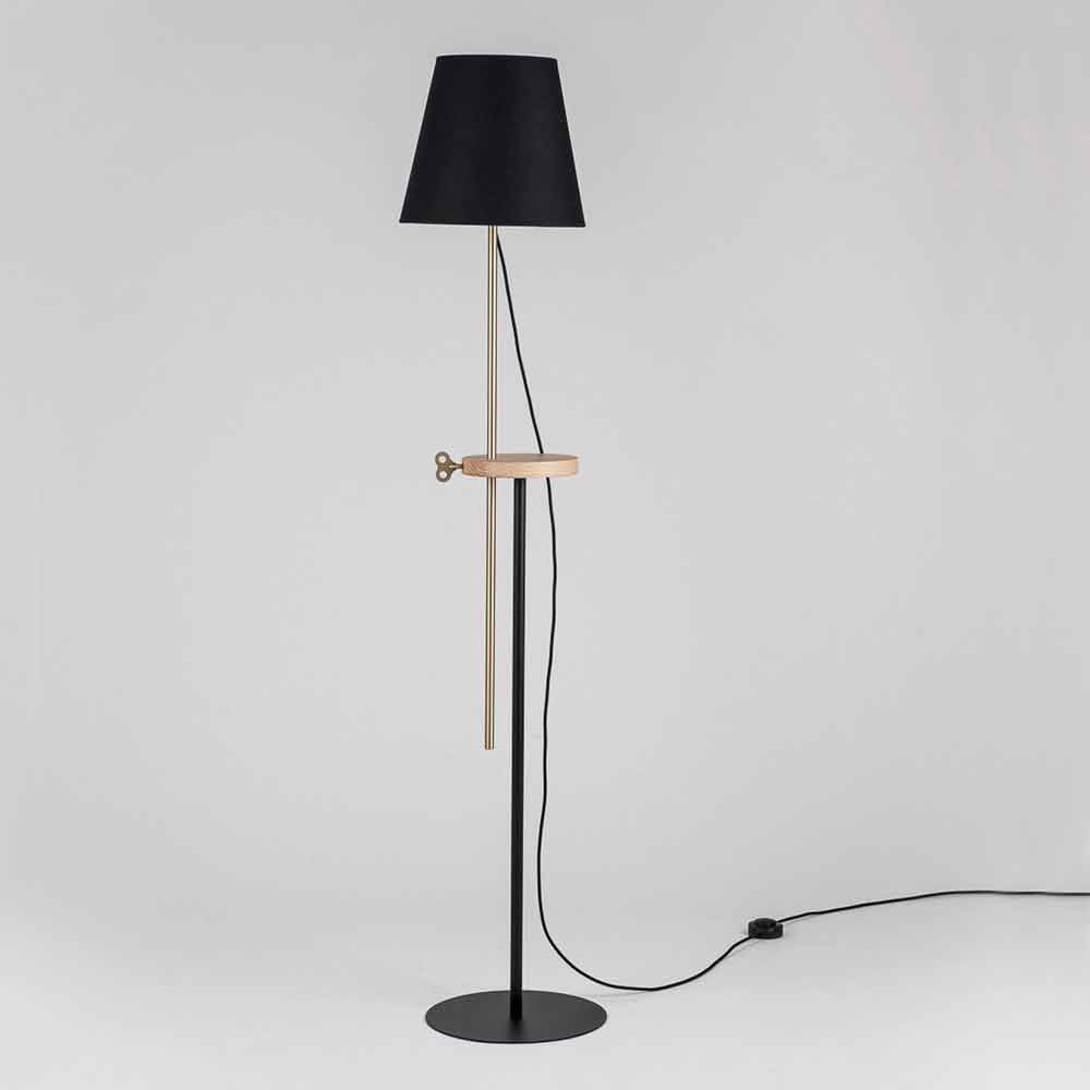 Lampă de podea design cu structură din oțel și lemn de frasin Fabricat în Italia.