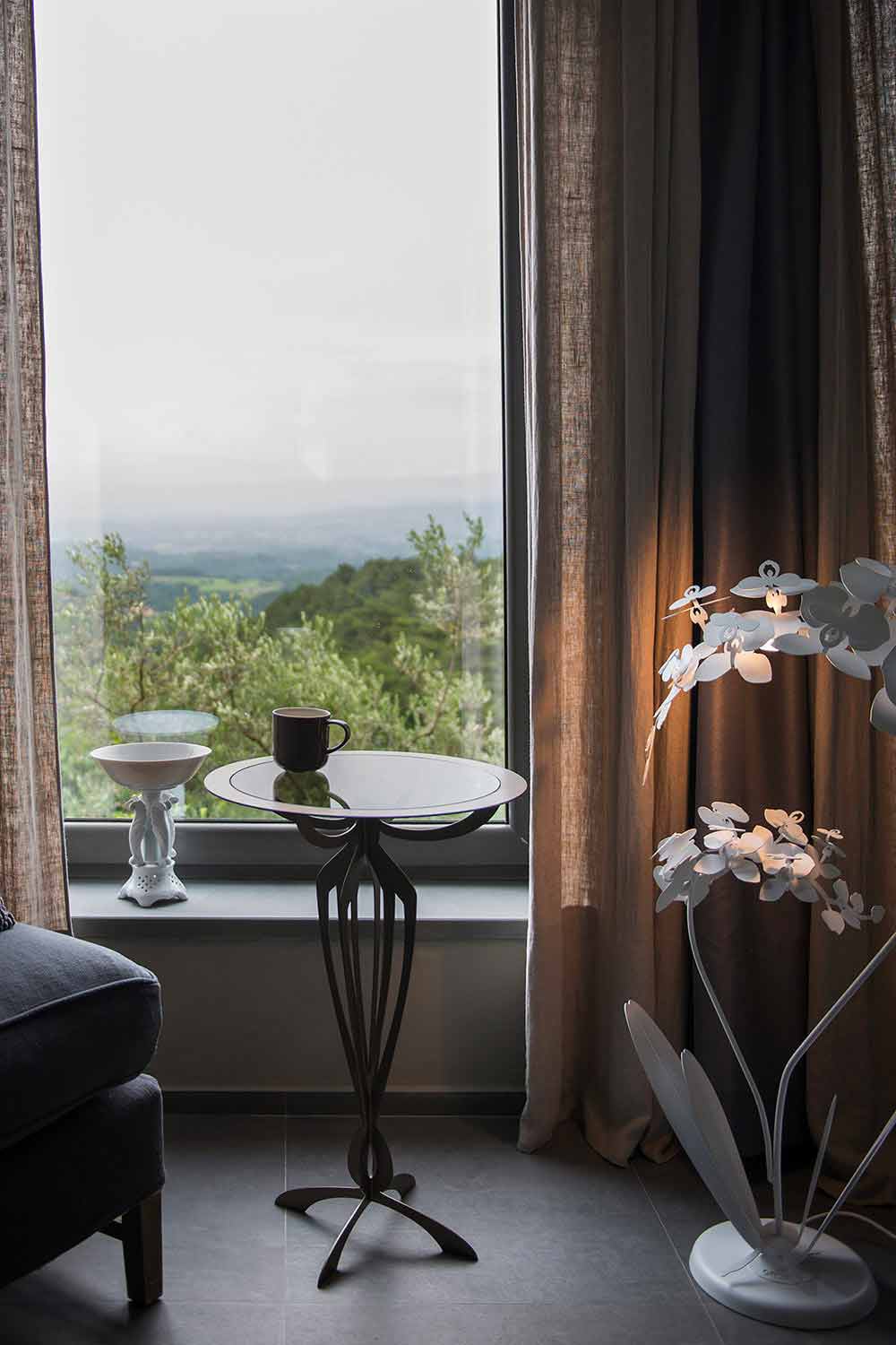 Lampa de podea Amorpha este conturată de linii rafinate și decorative în formă de orhidee, perfecte pentru a fi integrate în orice stil ambient, de la clasic la modern.