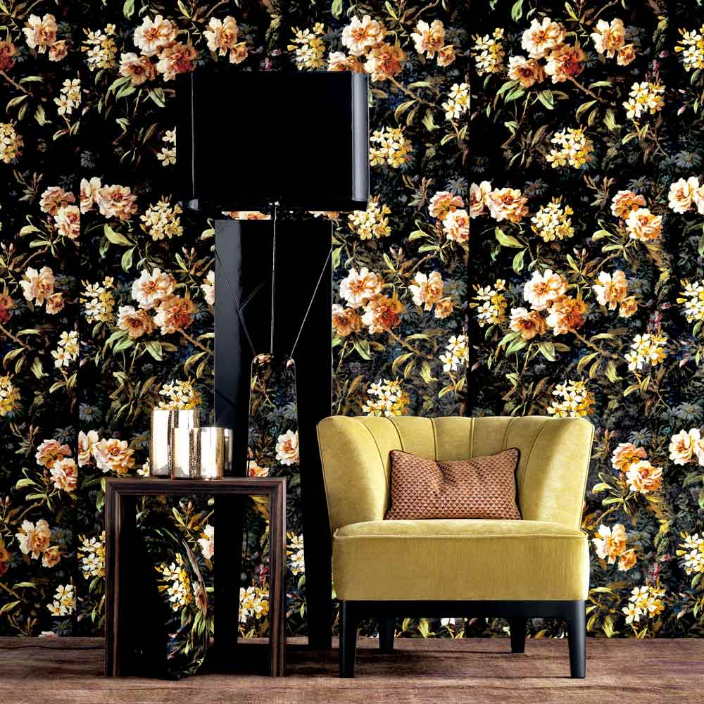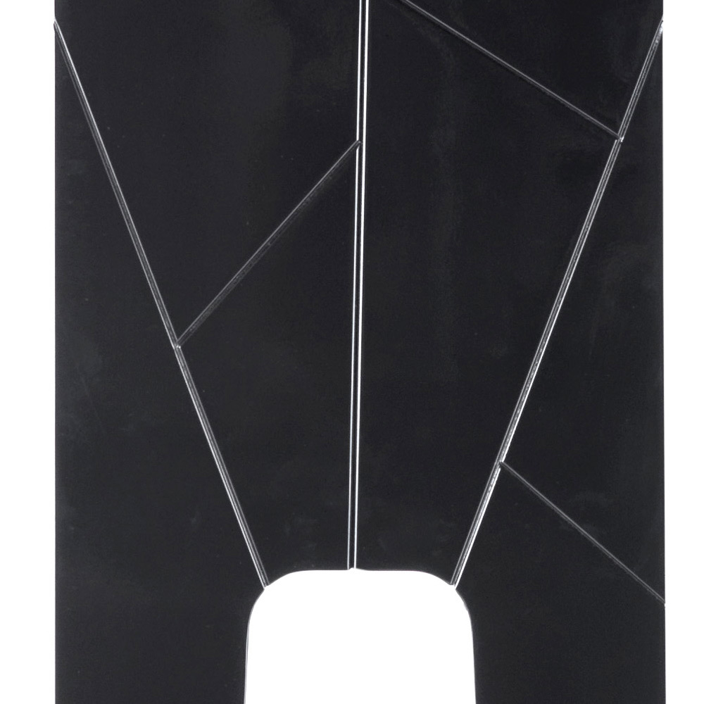 Lampa de podea Zarafa este confecționată dintr-o structură solidă din lemn masiv de culoare neagră și o pălărie din tesatura de satin negru.