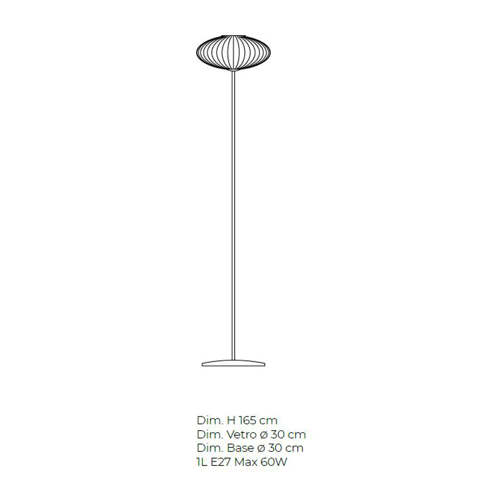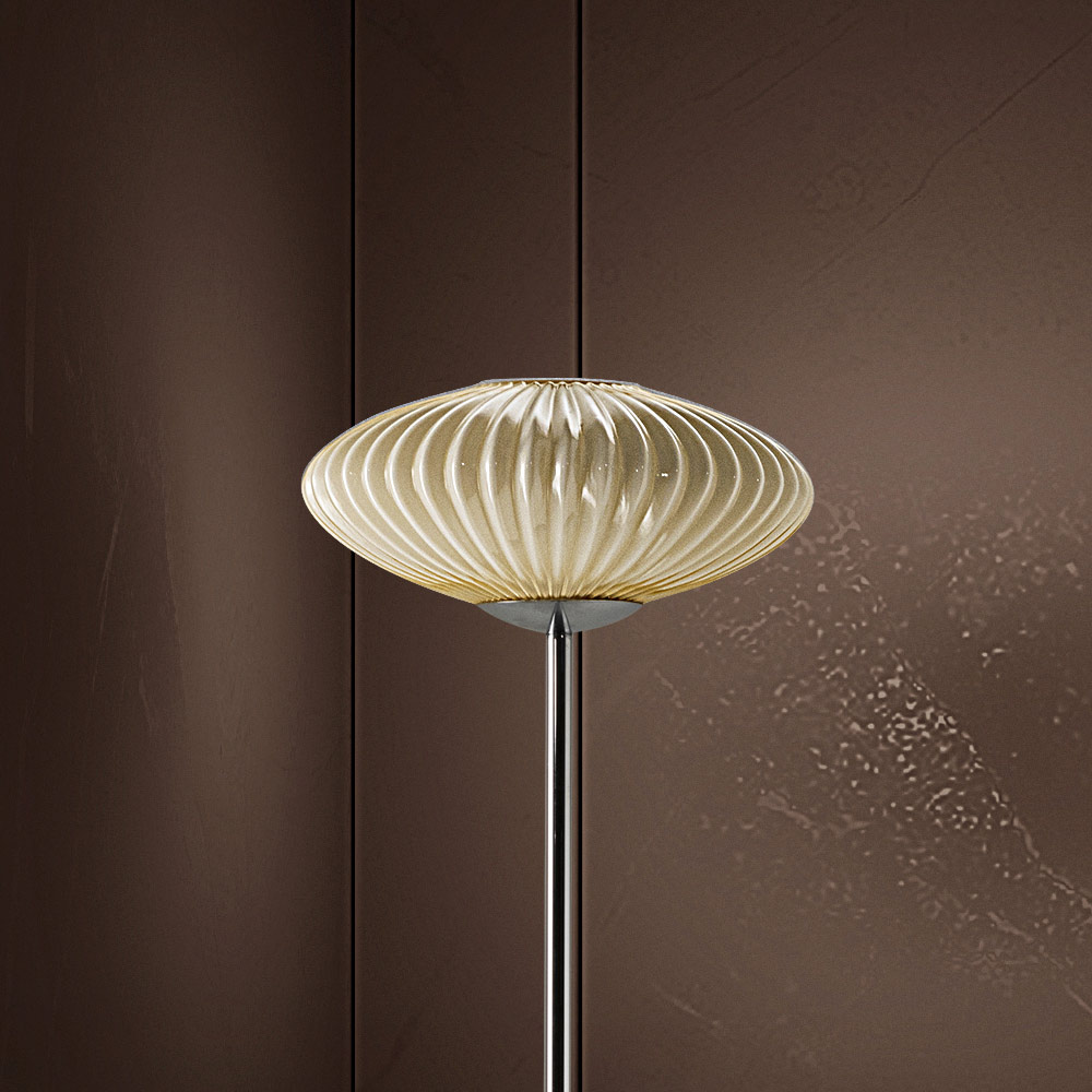 Lampă de podea din sticlă Venice suflată manual cu prelucrare cu nervuri.
