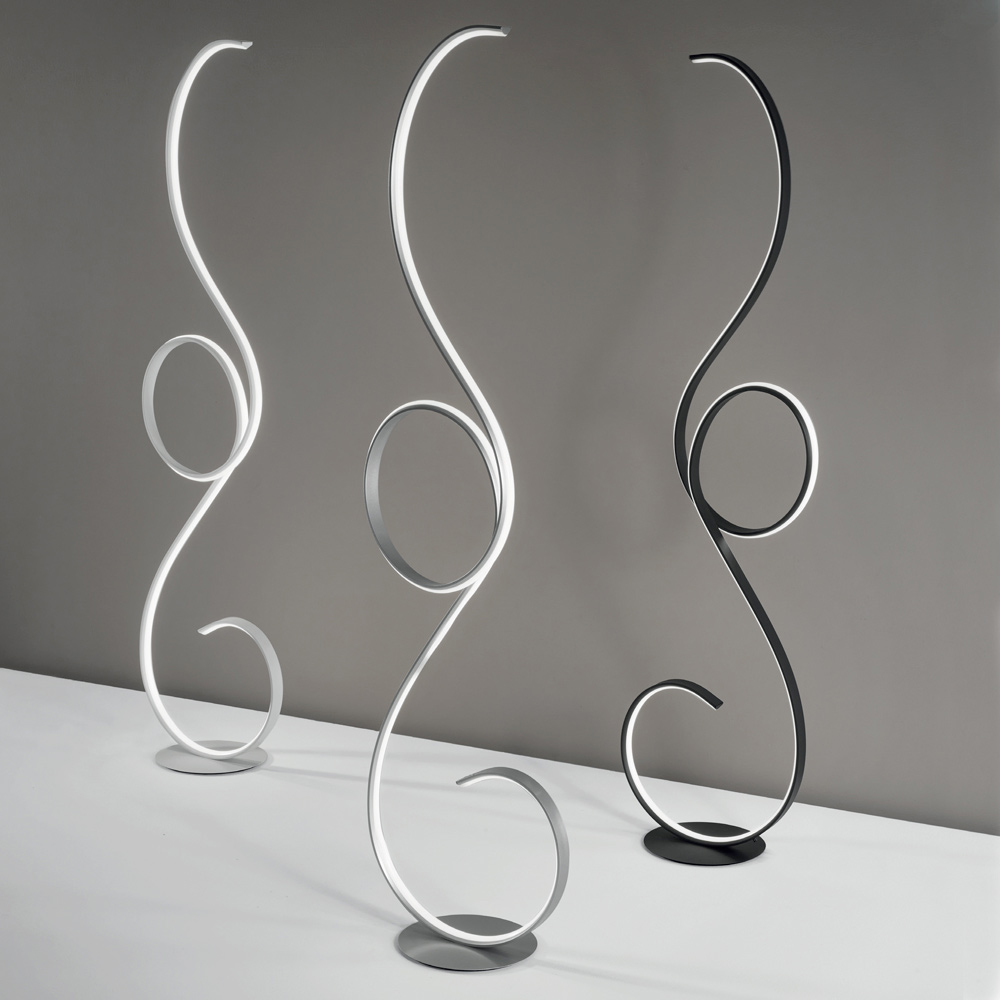 Lampa de podea din metal vopsit complet cu lumina LED.