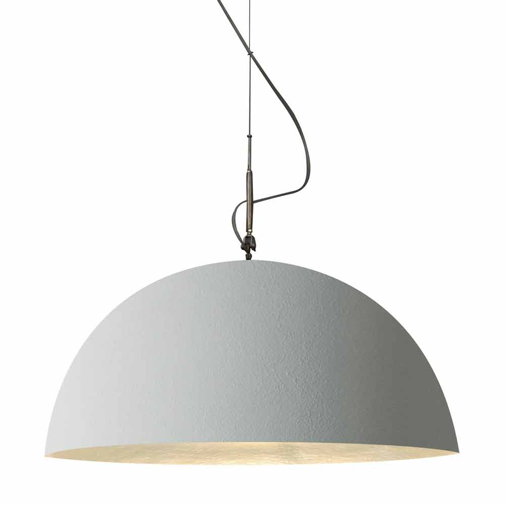 Lampa de suspensie Mezza Luna Cemento creată manual, cu atenție la fiecare detaliu mic de către In-es.artdesign pentru colecția Matt, este încântătoare și trează.