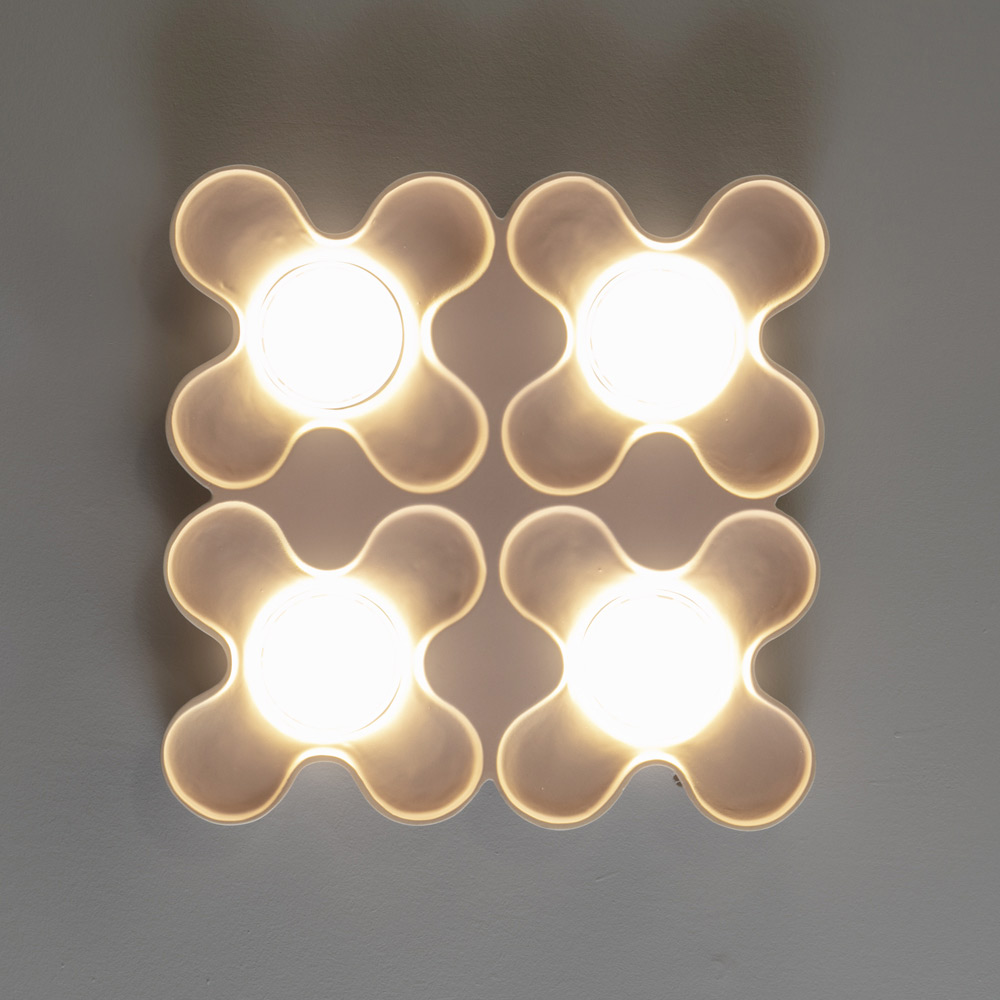 Plafoniera din ceramica alba cu interior colorat si componente din aluminiu realizata in Italia printr-o