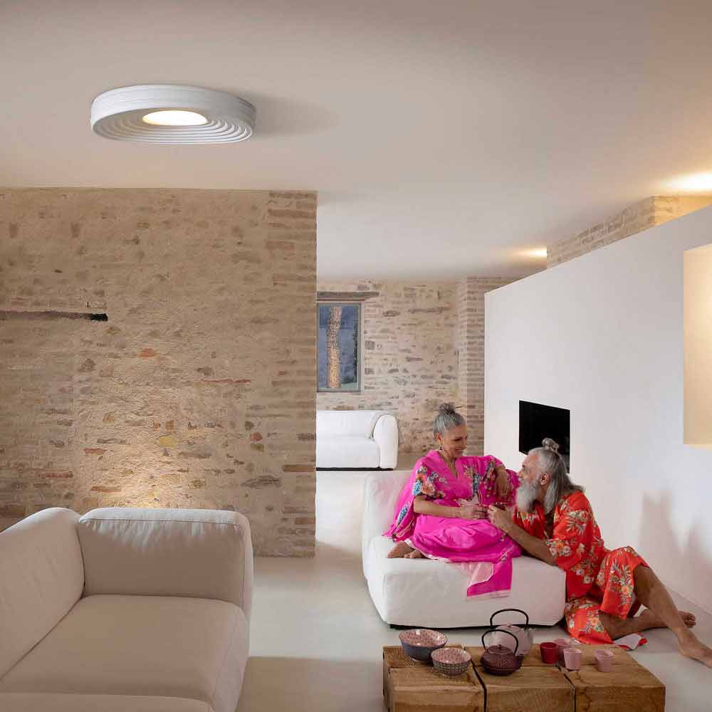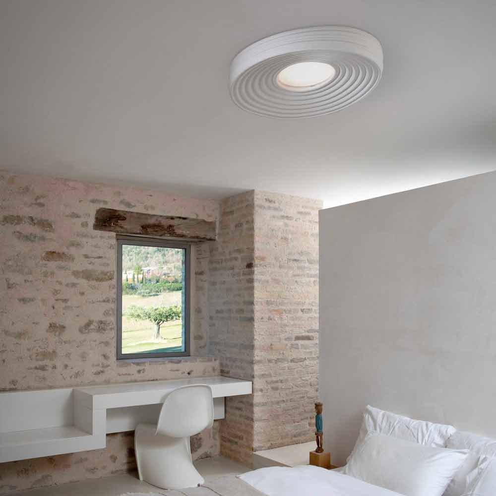 Lampa este fabricată din tencuială albă opacă și difuzor alb pmma pentru un design în întregime italian care, prin experimentare neconvențională și cercetare continuă între tradiție și modernitate , este capabil să uimească, să îndrăznească și să emoționeze, permițându-vă să vă exprimați emoțiile printr-un mod original și personal. utilizarea decorativă a luminii.