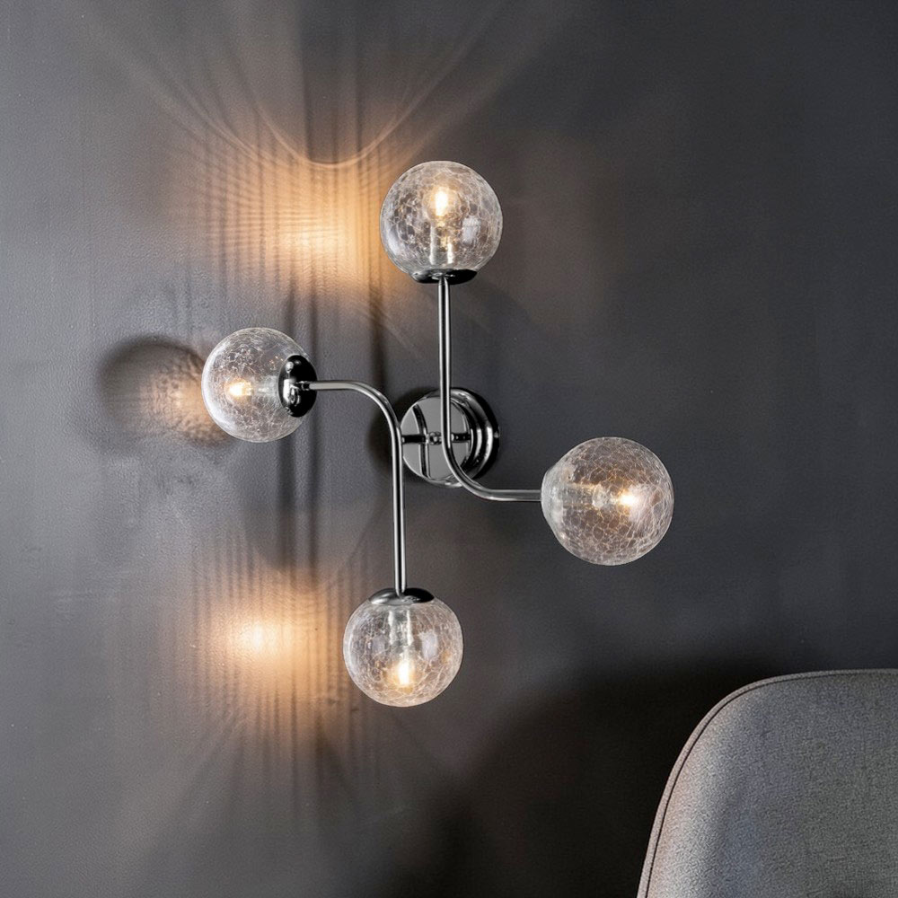 Simplă, modernă și atrăgătoare din punct de vedere vizual, această plafonieră de design din fier cromat lustruit este o soluție de iluminat contemporană, concepută pentru a îmbunătăți spațiile cu o eleganță discretă. Structura compactă, cu brațe echilibrate și difuzoare sferice, creează un joc rafinat de volume și reflexii care conferă profunzime spațiului.