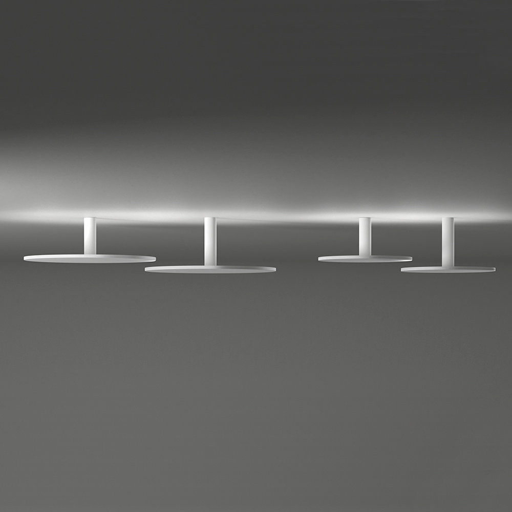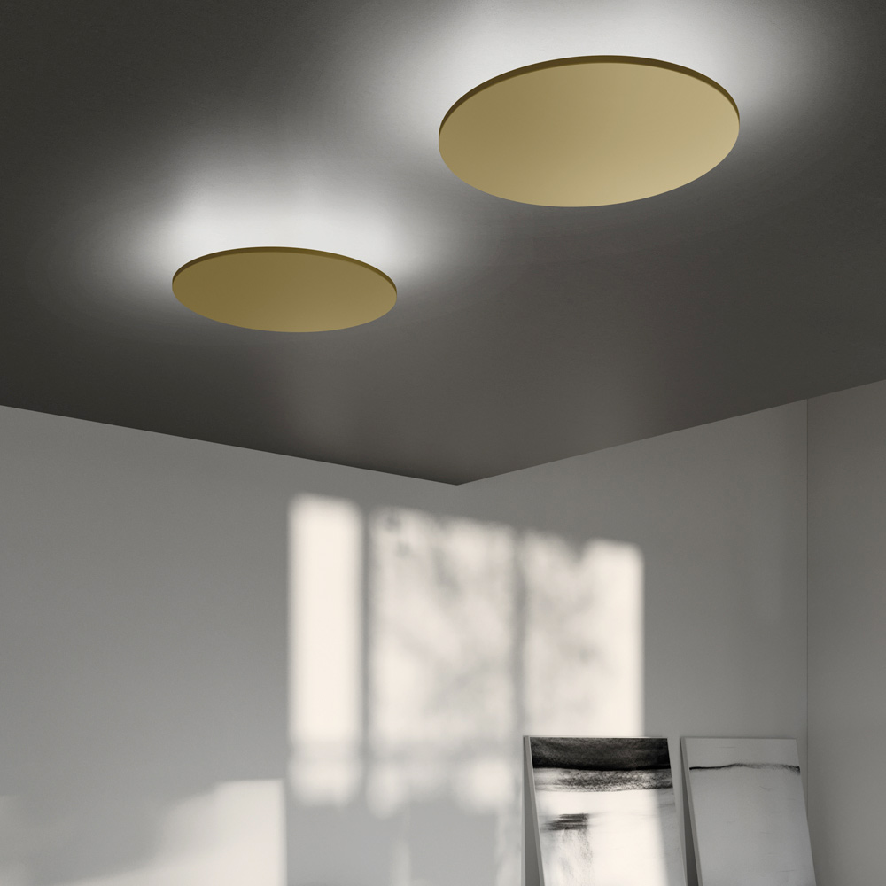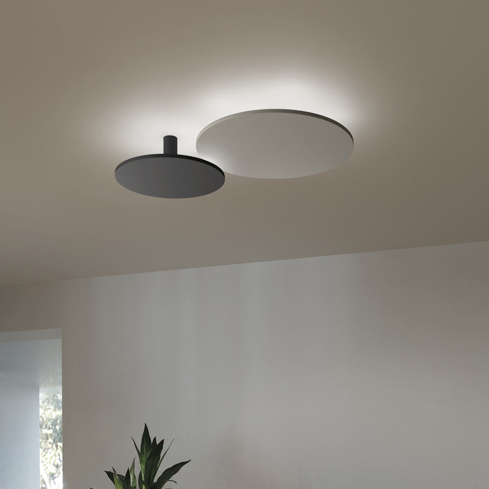 Această lampă de tavan este un exemplu rafinat de design contemporan , unde geometria și lumina se îmbină pentru a crea un efect scenografic subtil, dar de impact. Capacitatea de a crea compoziții de discuri suprapuse , cu diferite dimensiuni și finisaje, generează o lumină indirectă, difuză , care îmbunătățește mediul cu eleganță și armonie vizuală .