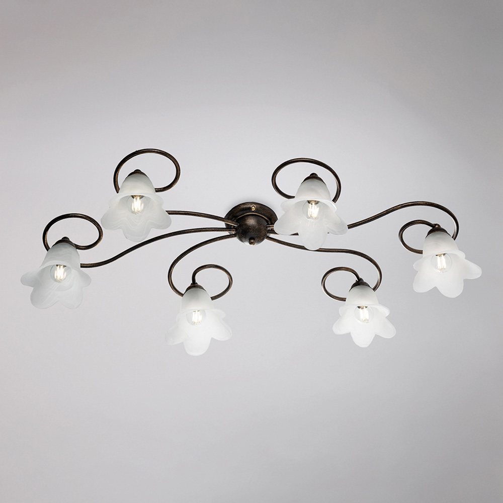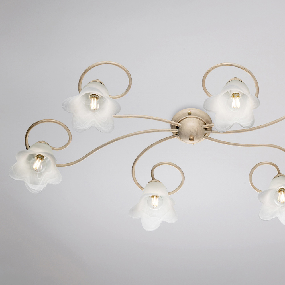 Materialele atent selectate - fierul și sticla - conferă un efect elegant și un flux luminos plăcut. Fabricată în întregime în Italia, această plafonieră este rezultatul unei măiestrii meticuloase care îmbunătățește atât estetica, cât și funcționalitatea.