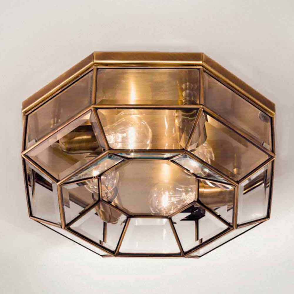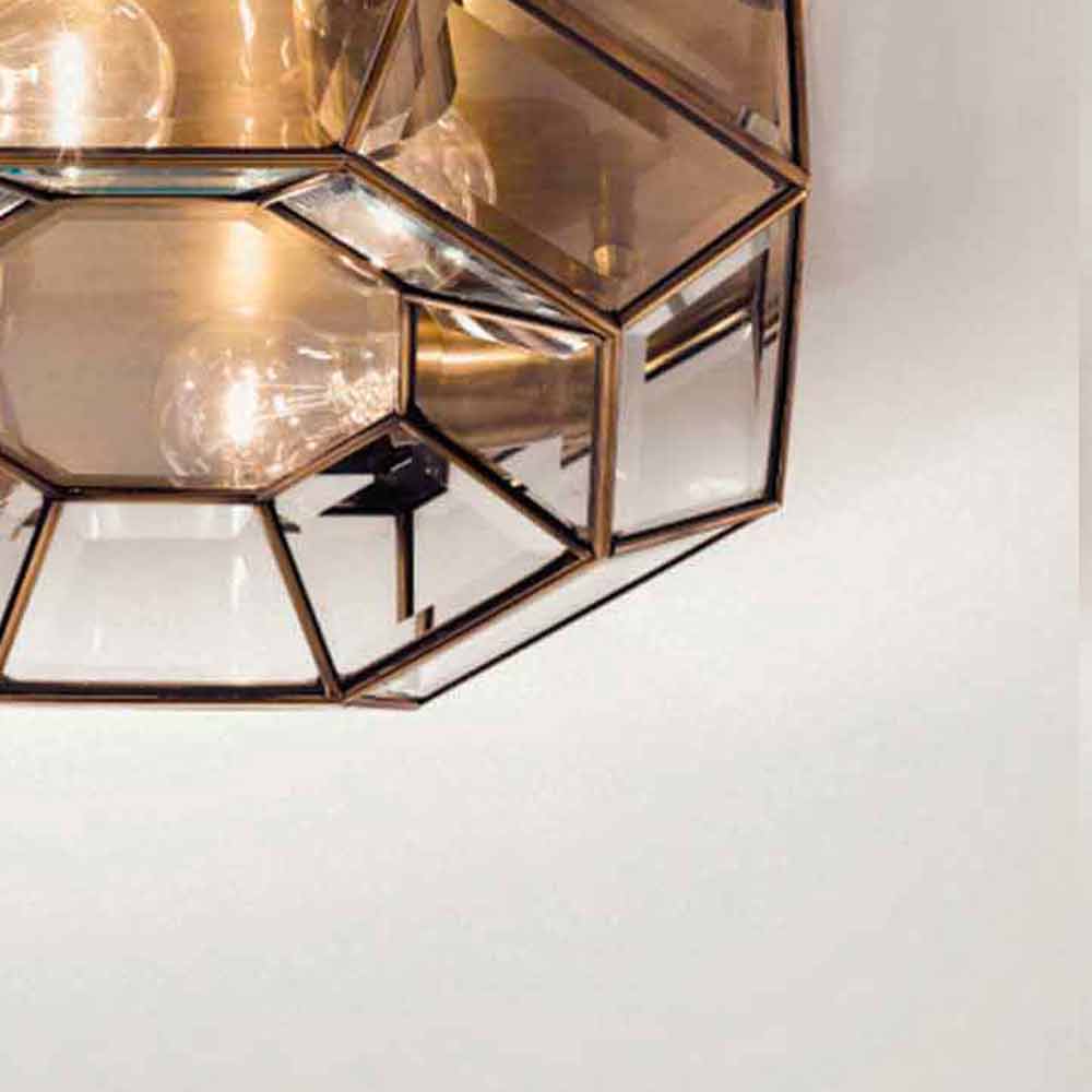 Lămpi de tavan cu 4 lumini octogonale din alamă și sticlă cu design manual realizat în Italia.
