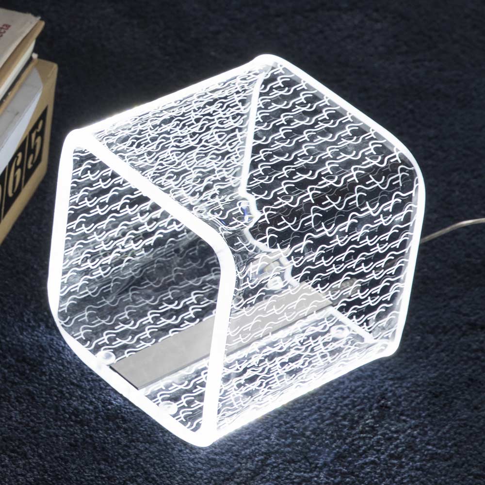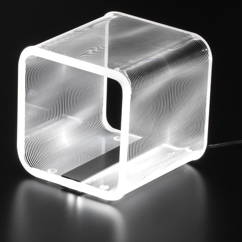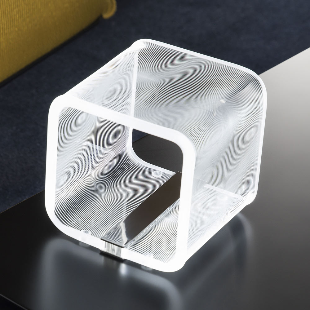 Lampă de masă cu bandă led pătrată din acril transparent 2 mărimi, fabricată în Italia.