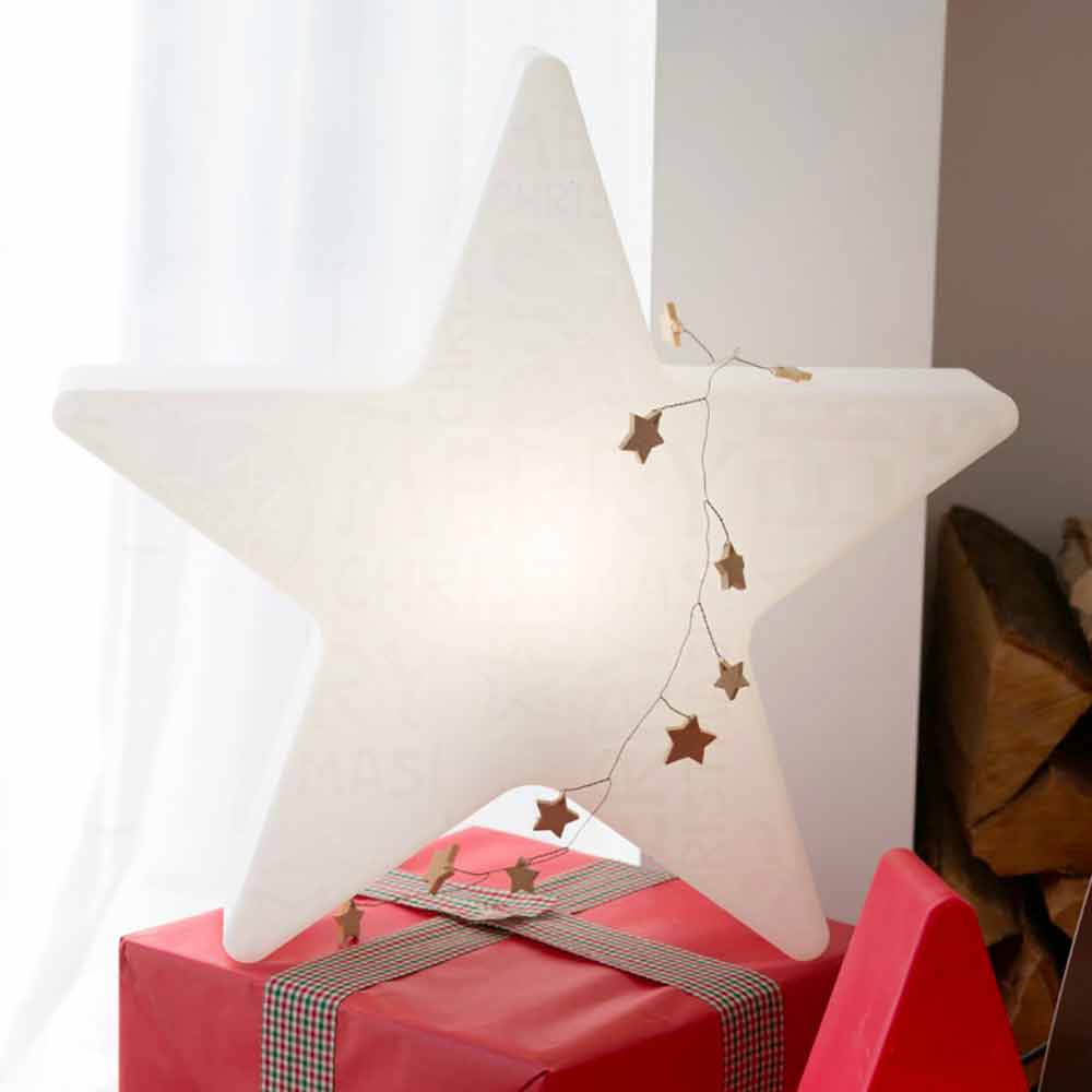 Lampă de podea sau de masă în formă de stea cu motiv de Crăciun în relief pe o parte din polietilenă pentru uz interior sau exterior.