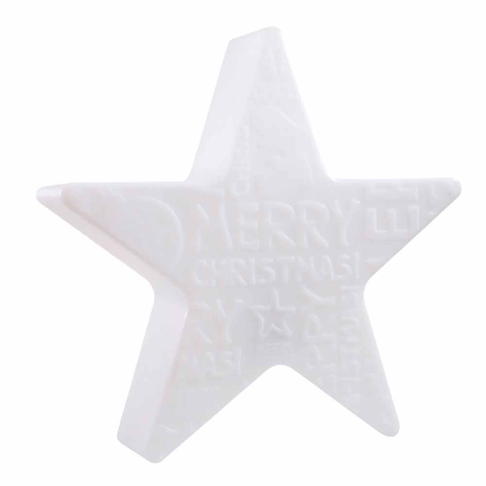 Această lampă de masă pentru interior sau exterior se caracterizează prin designul său atrăgător în formă de stea, cu inscripții tematice de Crăciun în relief în față, în timp ce partea din spate rămâne netedă. Un punct luminos decorativ care încântă sufletul și inima și creează o atmosferă strălucitoare și modernă, ideală pentru perioada de Crăciun .