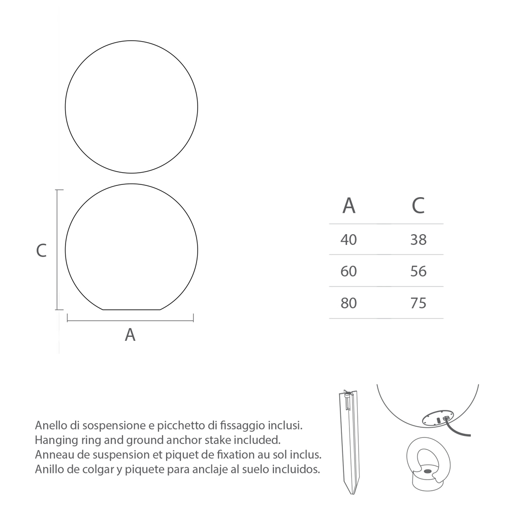 Această lampă de exterior este realizată integral în Italia din polietilenă , un material de înaltă calitate care face ca acest produs să fie foarte stabil și rezistent la agenții atmosferici, perfect pentru poziționarea în diverse spații exterioare . Un accesoriu de mobilier cu forma sferica disponibil in diverse marimi care iti va capta mintea imaginativa, permitandu-ti sa te joci cu cele mai variate si personalizate combinatii.