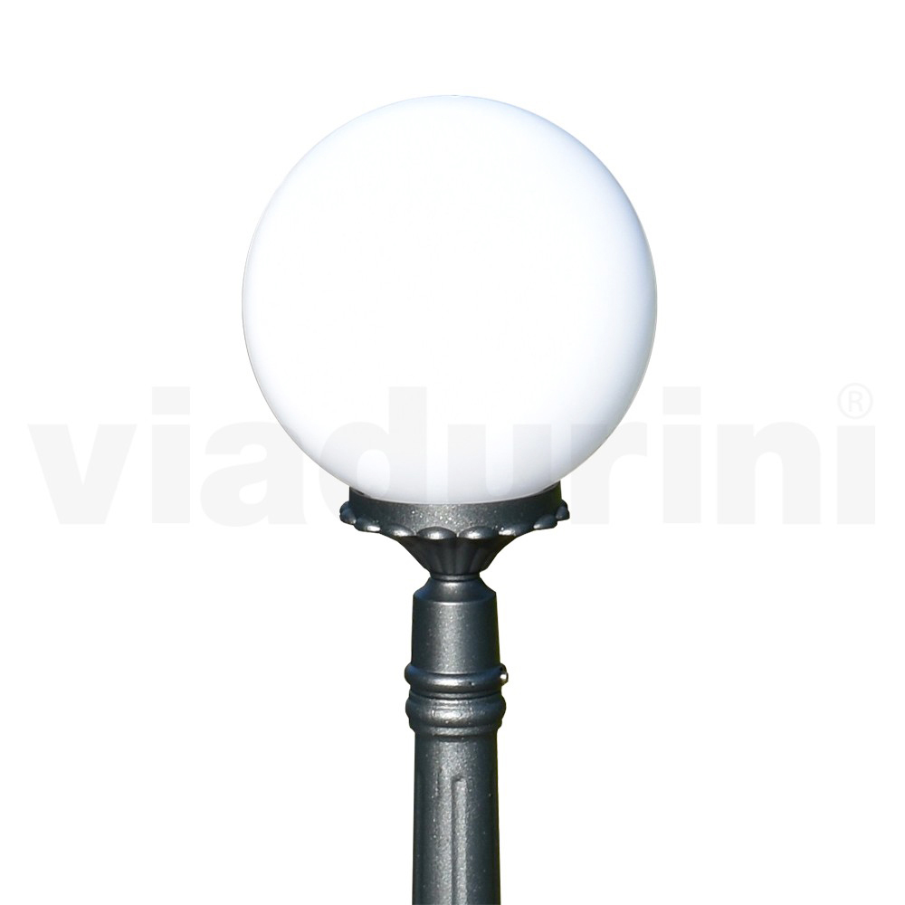 Lampa de gradina realizata cu structura din aluminiu turnat sub presiune cu finisaj antracit si difuzor sfera acrilic opal , in intregime Made in Italy.