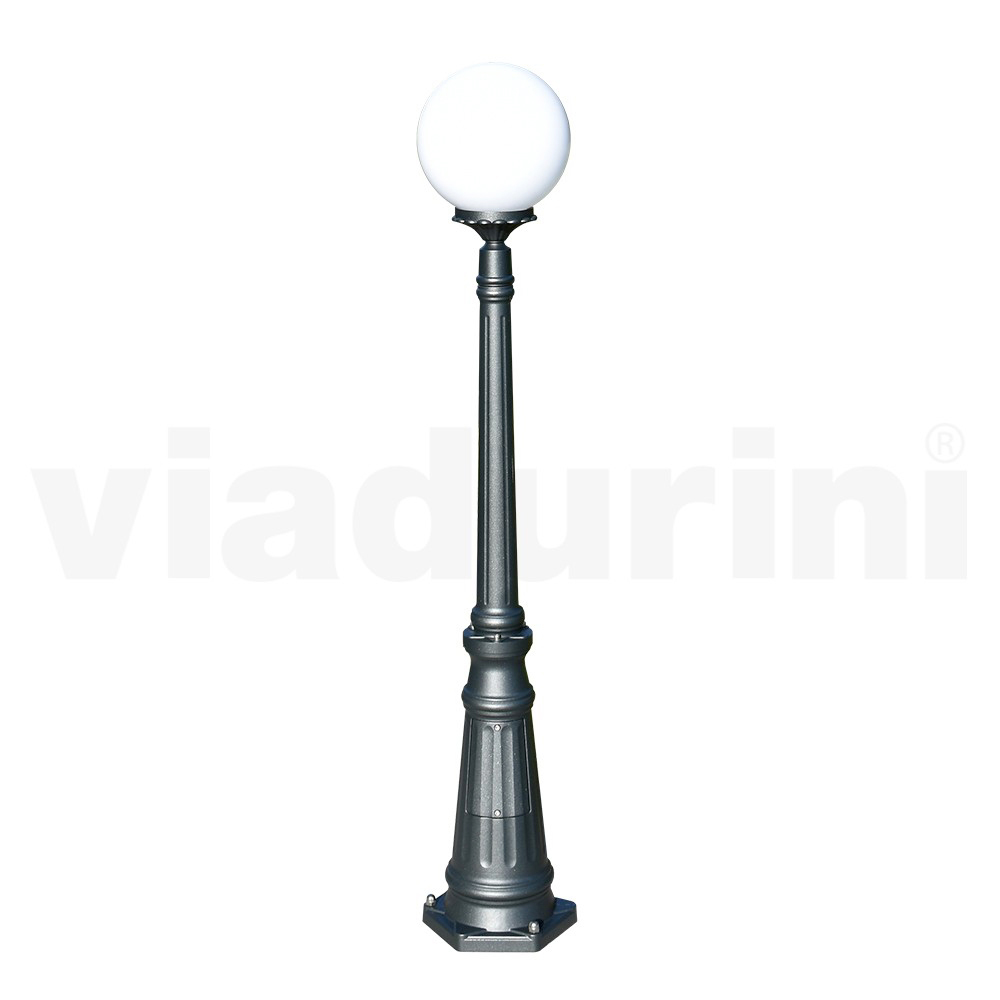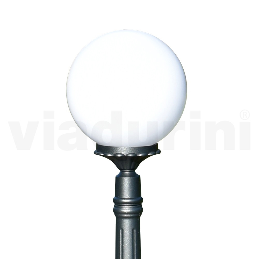 Lampa de gradina realizata cu structura din aluminiu turnat sub presiune cu finisaj antracit si difuzor sfera acrilic opal , in intregime Made in Italy.