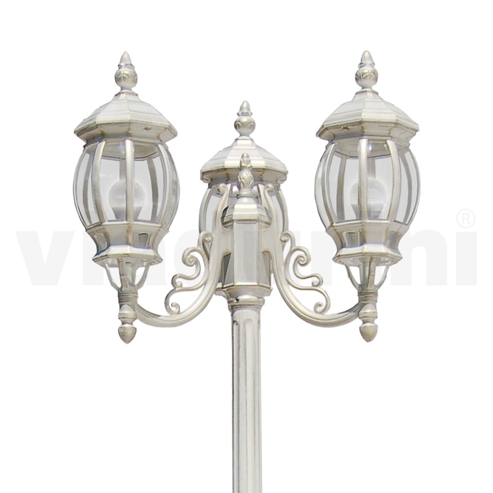 Lampă de grădină vintage cu 3 lumini din aluminiu și policarbonat Made in Italy.